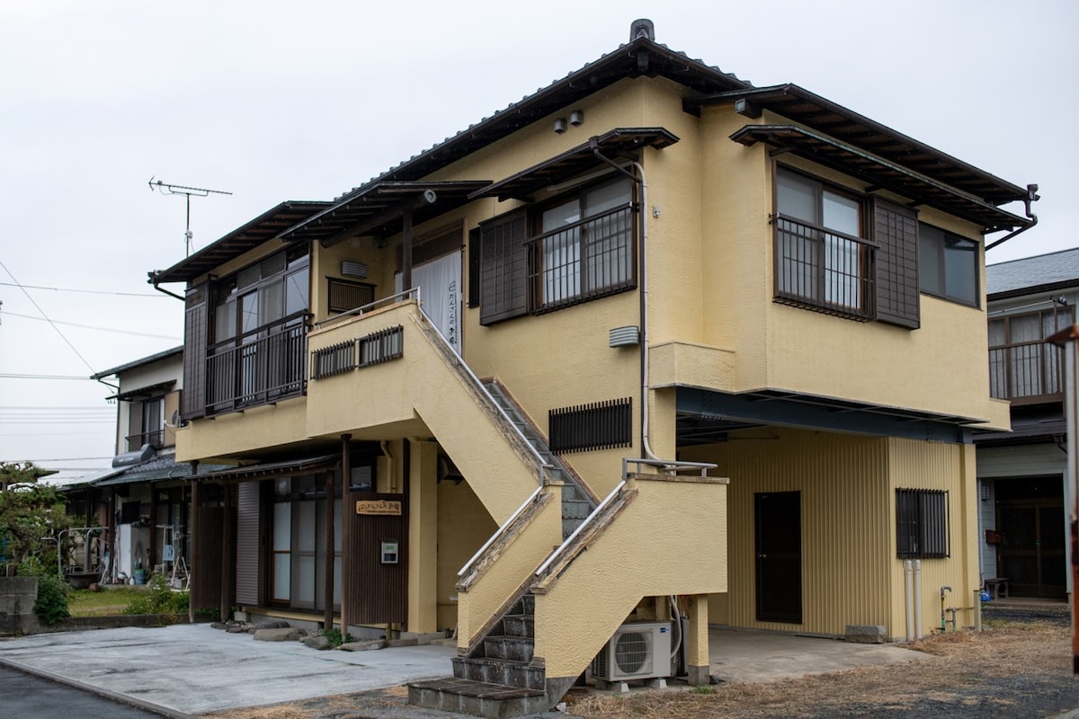 東京から2時間、熱海・伊豆への観光拠点に最適! 築50年の民家をホスト夫婦がセルフリノベーションして宿にしました。 30年前に増築された別棟が滞在スぺースです。 別棟のお部屋と母屋(ホストの家)は屋根でつながっていますが壁で仕切られております。 玄関、シャワー、トイレ、キッチンも別にあり、外出は自由、プライバシーは守れます。ホストも隣に住んでいるので、地元ならではのサポートもできます。 木々の揺れる音、鳥や虫の声を聴きながら、ゆっくりとした時間をお過ごしください。 ■有料オプション ①BBQグリル 3,000円 / 1回 ガスタイプの為、炭は不要。ダイヤルを回すと簡単に着火できます。 ②薪ストーブ 1,000円 / 1回 11月〜5月までの期間 ③薪サウナ 2,500円 / 1人 2名から、水着着用必須 ※オプションをご利用の場合はご予約時にお知らせください。 ※全てのオプションは15:00〜21:00までが利用時間です。 ※火器の持ち込みはご遠慮ください。