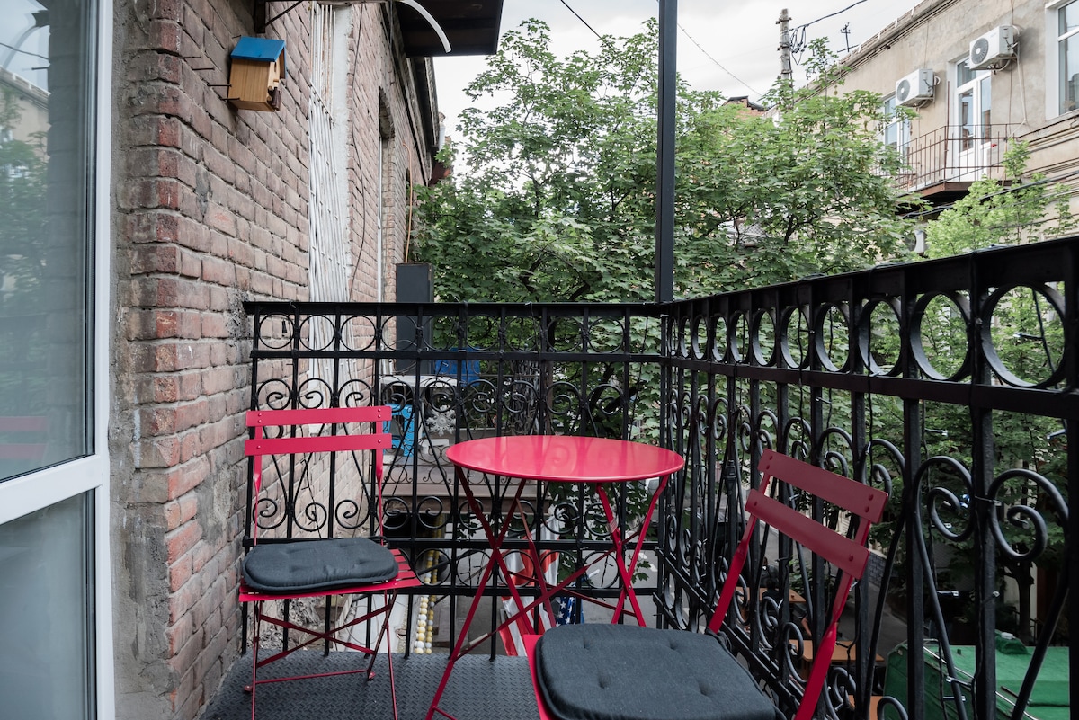 Este estudio de diseño fue originalmente el hogar del famoso artista georgiano Avto Varazi. Los techos altos crean una sensación de espacio que se acentúa con paredes de ladrillo expuestas con accesorios coloridos y obras de arte expresivas que agregan una floración final. Situado en el corazón del antiguo barrio bohemio del centro de Tbilisi. Simplemente salga para encontrar lugares populares, bups, bares, explorar áreas históricas cercanas, lugares culturales y disfrutar de la bulliciosa vida nocturna. El lugar es bueno para parejas, aventuras en solitario, viajeros de negocios y familias con niños, puede adaptarse perfectamente a 5 personas. Nuestro apartamento se encuentra en el segundo piso de un edificio del siglo XIX muy cerca de la AVENIDA RUSTAVELI. Fue completamente renovado en marzo de 2018 y está equipado con todo lo que necesitará durante su estancia. Intentamos combinar su encanto rústico con un diseño fresco, moderno y funcional. Pensamos cuidadosamente en cada pequeño detalle para que nuestros huéspedes se sientan como en casa. El apartamento tiene un dormitorio separado con una cama queen size (180/200) y armario, sala de estar/comedor con un balcón frente a la calle, cocina totalmente equipada y un pequeño y acogedor loft (Mezzanine Bedroom) con un sofá cama (150/190) y colchón en el piso en la sala de estar para una persona. ● El metro de Rustaveli y las paradas de autobús están a solo 2 minutos a pie del apartamento. ● Los lugares populares cerca del apartamento incluyen: Hotel Radisson Blu, Habitaciones del Hotel, Hotel Stamba, Hotel Bitlmor, Vera Park (jardín de Samaia), Pub Nali, Tennis Court, Casino Iveria, Casino Biltmor, Opera House, Café Lolita, Café Stamba, Teatro Rustaveli, Plaza de la Libertad, Museos, Salones de Arte, Sala de Conciertos de Tbilisi, teatro Marjanishvili, centros comerciales. Cerca de todo !!! Самое сердце города, в шаговой доступности проспект Руставели ¡Toda la casa está disponible para los huéspedes ! Wi-Fi ● gratis y rápido; TV de pantalla● plana con canales internacionales; ● Aire acondicionado; Sistema de calefacción● central; ● Cocina totalmente amueblada (nevera, hervidor eléctrico, tostadora, microondas horno, estufa, zumos eléctricos de cítricos); ● Café, té y azúcar; ● Lavadora; Sábanas y toallas de lino de● alta calidad; ● Secador de pelo, plancha y tabla de planchar; ● Paraguas; ● jabón y papel higiénico; - Estaremos disponibles durante toda su estancia por teléfono o correo :). Vivimos sólo unos pocos a pocas cuadras del lugar y estará encantado de ayudarle. - Previa solicitud, podemos organizar el traslado para nuestros huéspedes (cargo adicional por un viaje de ida de 20 $ /Los huéspedes pagan directamente al conductor) - Auto check-in/salida con una caja de seguridad también está disponible; La casa está ubicada en el centro de la ciudad rodeada de edificios históricos y tiendas independientes. Cene en restaurantes familiares, pubs y cafés, explore los mercados locales y las boutiques vintage, y explore los museos y galerías cercanas. transporte público (metro, parada de autobús a solo 2 minutos a pie del apartamento) - Los horarios de entrada/salida pueden ser flexibles, a menos que haya invitados llegada/salida el mismo día. En este caso el check-in será a partir de las 14:00 horas. y salida a las 12:00 p. m.