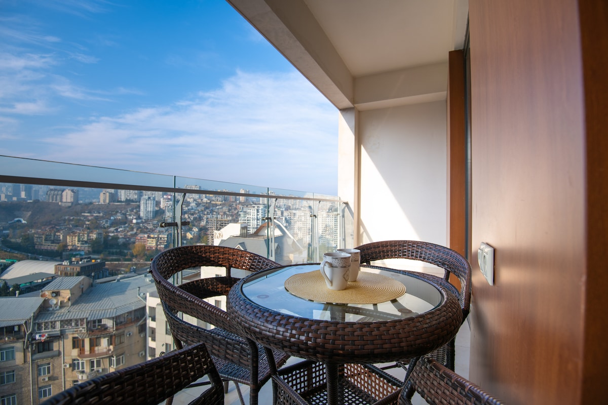 Panoramic Views · Designer 1BR · Vake • Superhost