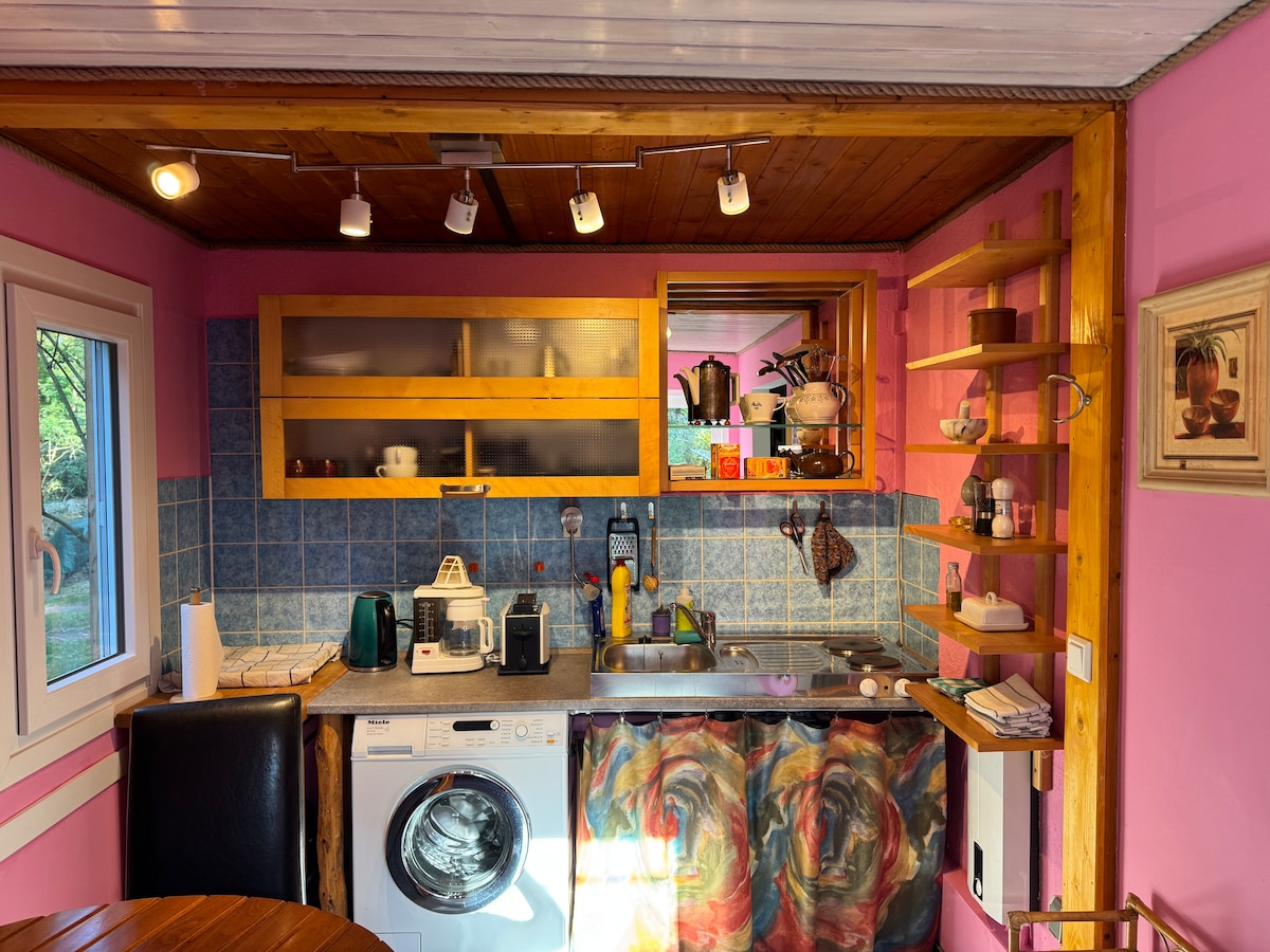 En nuestra casa de asentamiento para no fumadores sin animales alquilamos el apartamento en la planta baja con dos dormitorios, cocina con comedor, invernadero y baño con toallas incluidas. Lamentablemente, el apartamento no es accesible porque a la casa solo se puede llegar por escaleras. Detrás de la casa hay una pequeña terraza para nuestros huéspedes. Lamentablemente, nuestra casa no es apta para niños pequeños. El apartamento cuesta 90 euros por noche para 4 personas. Puedes estacionar fácilmente.