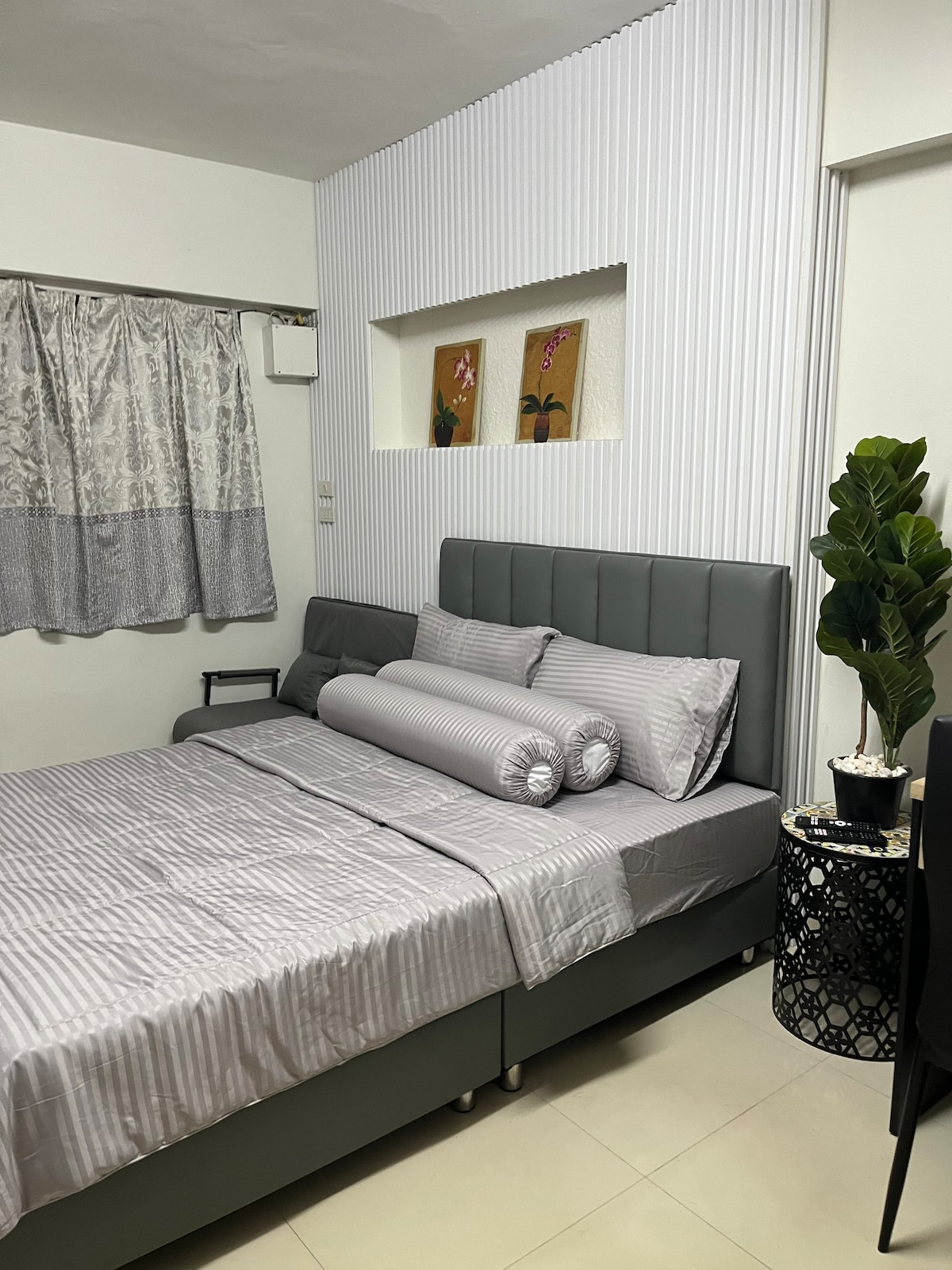 Welcome to The Forest Duplex Retreat – a relaxing nature escape in a quiet green setting. 🍀 The duplex features a bright, high-ceiling living area that feels open and airy. Large glass windows invite natural light and greenery into the space, creating a seamless connection between indoor comfort and outdoor serenity. Imagine wake up to birdsong and soft light filtering through the trees, relax on the soft sofa, work by the window with forest views, or simply enjoy stream your favorite shows.