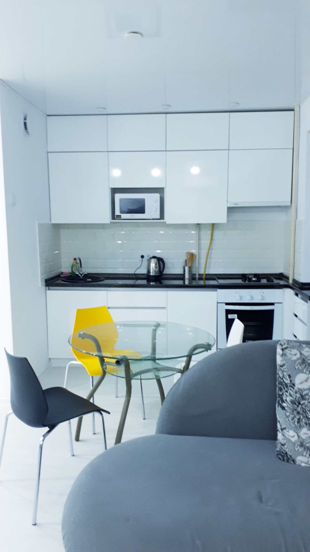 Acogedor estudio, situado en el complejo residencial Premium Plaza, una casa tranquila y silenciosa, con infraestructura desarrollada, excelentes cafeterías, tiendas y una panadería. Adecuado para absolutamente todos los que quieran pasar el tiempo con comodidad. Cerca del mar, a 5 minutos en coche, te recibirá un hermoso paseo marítimo.
