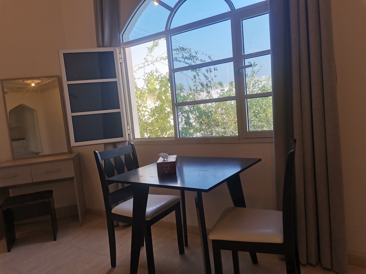 Tranquilo de 1 dormitorio en una casa pequeña, céntrico, barrio tranquilo, supermercado cercano, restaurantes. El estudio es una casa pequeña con entrada solo para 3 apartamentos, por lo que tiene más privacidad. Tiene una pequeña sala de estar al aire libre. La cocina está totalmente equipada con sartén, platos, cubiertos, etc. La playa y el parque de Azaiba están a 5 minutos en auto de la casa. Es una de las mejores zonas de Muscat, Azaiba. Propietario muy amable y servicial.