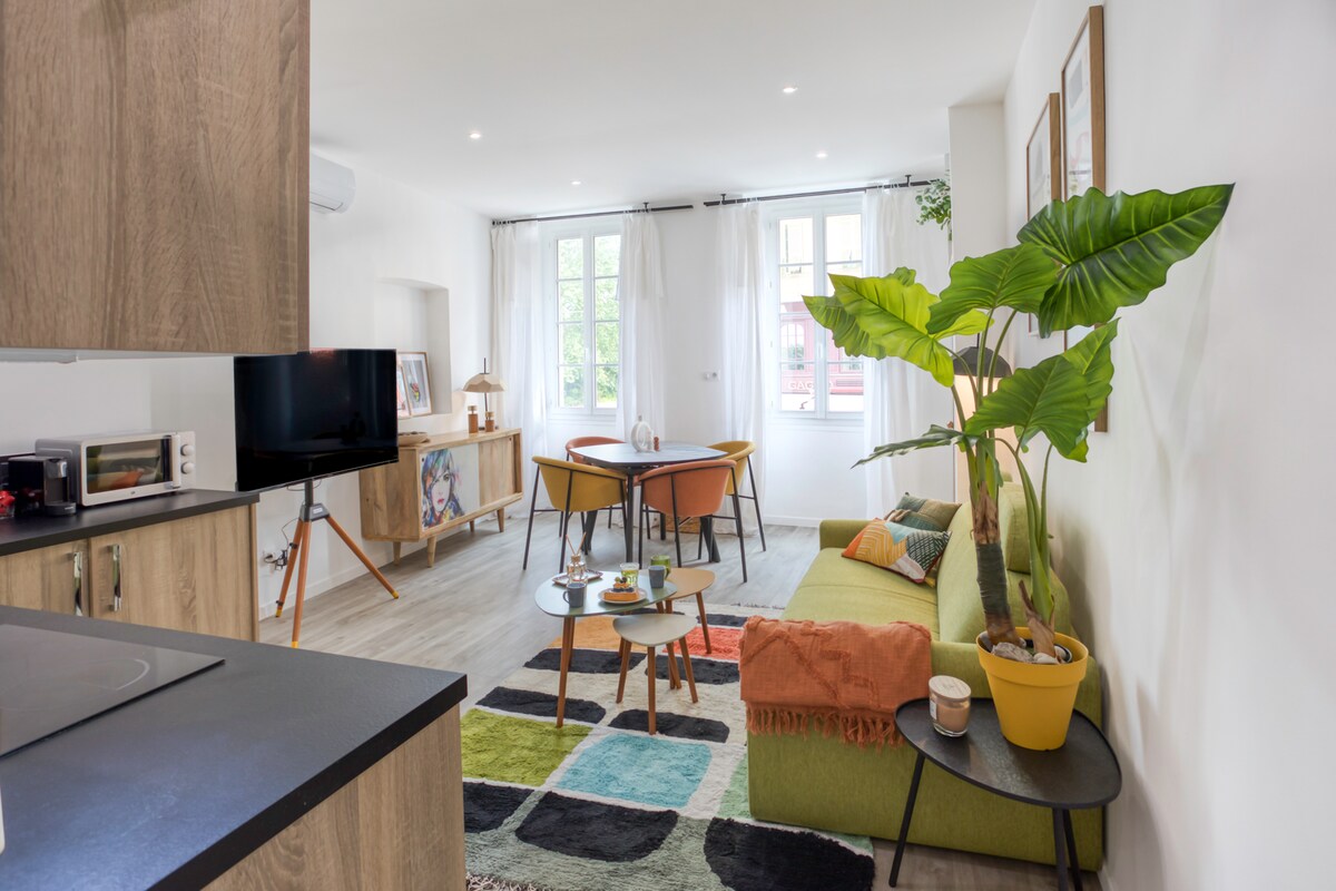 Por encima del arco iris 🌈 y bajo el sol🌞: ¡bienvenido a este lugar ÚNICO en el corazón del casco antiguo de Niza! Verdadera TERRAZA con increíbles vistas a la cúpula de la Catedral de Sainte-Réparate. Moderno, completamente renovado y con aire acondicionado, solo le acompañará el bienestar. Aunque, el sol también estará presente hasta su puesta, para el romanticismo. ¡Amantes/a de piezas únicas, este lugar es para usted! Y aunque en el centro de la vida y la magia del casco antiguo de Niza... la tranquilidad... ¡Buena relajación!