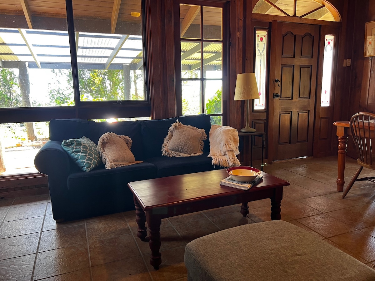 Relájate con toda la familia en esta tranquila escapada al campo. Despiértate con los sonidos de increíbles aves autóctonas rodeadas de árboles autóctonos en más de 100 acres en el hermoso valle Hunter. Esta acogedora casa de campo de 2 dormitorios es una estancia perfecta en una granja familiar. Tenemos hermosos animales con los que los huéspedes pueden interactuar, incluidos caballos y pollos, que pueden proporcionar los huevos más frescos para su desayuno en la terraza envolvente con vistas a las presas y las colinas onduladas más allá.
