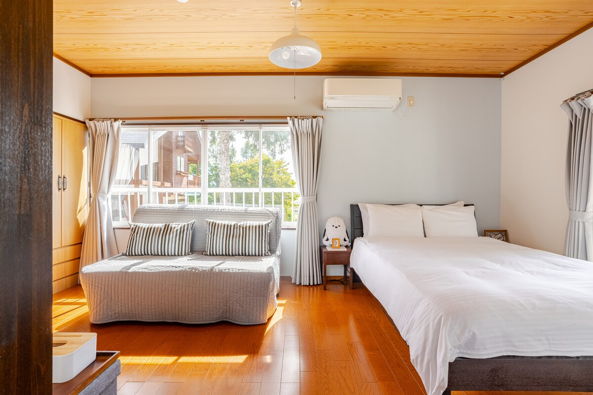 Una pequeña casa de retiro herbal rodeada de la rica naturaleza de Shinshu. Puedes usar libremente más de 80 tipos de hierbas para sanar tu mente y cuerpo con té de hierbas y baños de hierbas. En la sala de estar con estufa de leña, puedes leer o disfrutar de la hora del té mientras te envuelve la calidez de las llamas. Hay un fogón y un horno de pizza en el jardín, donde puedes disfrutar de una hoguera y pizza casera. Fuera de la ventana está el paisaje de temporada del parque Bingushi no Sato. Puedes disfrutar de picnics y paseos matutinos en el césped, así como de cerezos en flor y hojas de otoño. Se admiten mascotas y puedes caminar con ellas en la naturaleza. A 1 minuto en auto de una magnífica vista de aguas termales y muchas aguas termales locales a 10 minutos. A pocos pasos, también puedes visitar el castillo de Ueda, Seikogen y el Power Spot Tour. La ropa de cama incluye 1 cama doble en el loft (se puede agregar un futón individual si se desea), 1 cama doble de futón en el espacio de la alfombra de tatami del primer piso y el sofá se puede usar como una cama individual.Puede alojar hasta 5 personas.