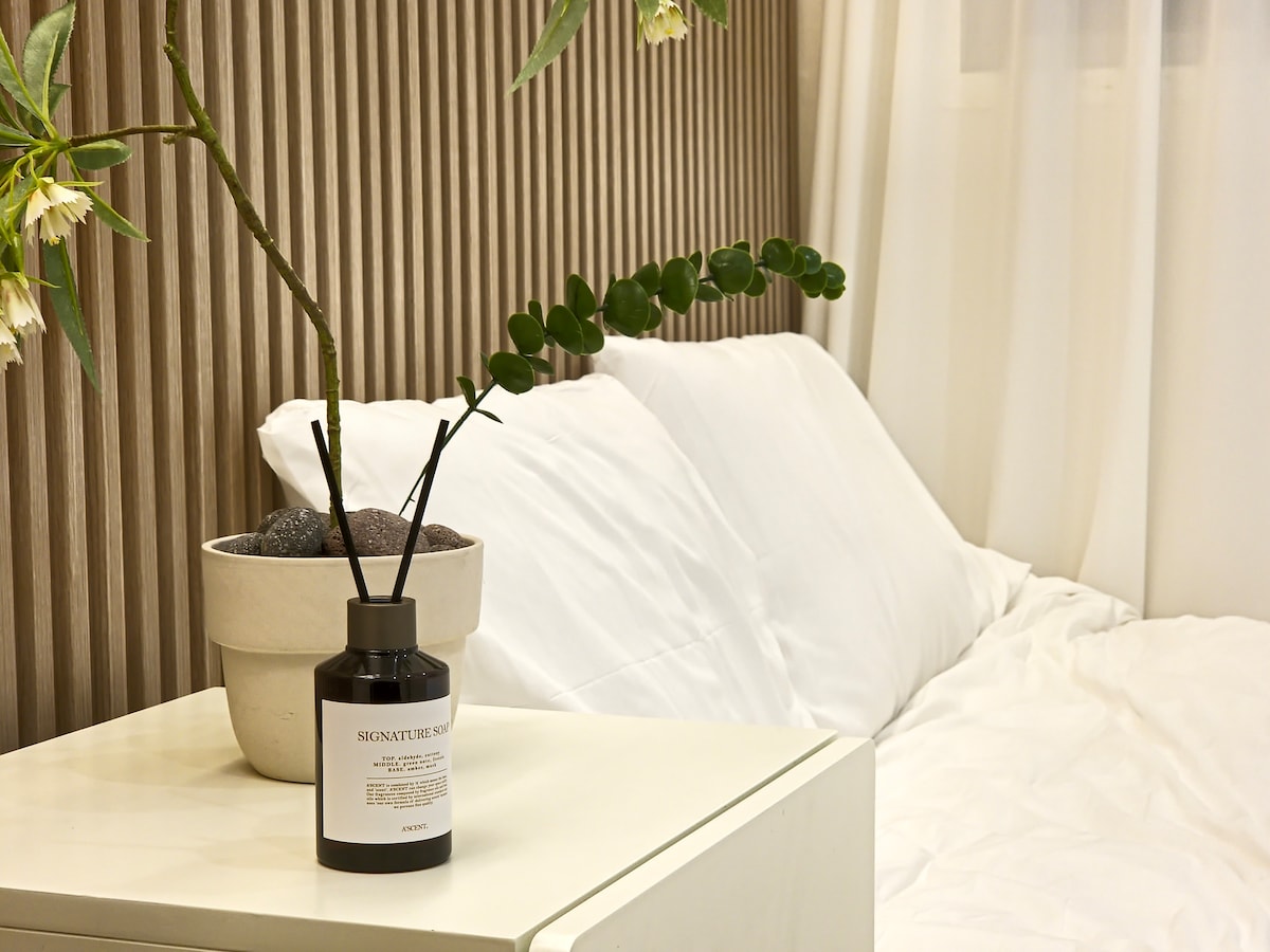 🌊밀락더마켓 바로 옆, 광안대교와 바다가 한눈에 보이는 숙소입니다! 🌊광안대교가 정면으로 보이는 광안리 최고의 뷰를 가지고 있습니다. 🌊깔끔하고 쾌적한 신축 숙소이며 넉넉한 공간, 감성 있는 인테리어 소품들, 다양한 어메니티가 구비 되어 있습니다. 🌊호텔 급의 최상의 룸 컨디션으로 매일 침구류 세탁합니다. 🌊해변 도보 3분 거리에 위치하여 시끄러운 중심가를 살짝 벗어나 안락하고 쾌적하게 머무르실 수 있습니다. 🌊건물 내 무료주차 가능하십니다. 🌊기준 2인, 최대 5-6인 (토퍼 제공, 소파 취침 가능, 침구류 추가 제공) 🌊침실 2개, 거실, 욕실, 파우더룸, 세탁실 완비 🌊샤워실 분리되어 있습니다. 🌊체크인 16:00 체크아웃 12:00 (근처에 캐리어 보관상점 있습니다.) 🌊아기의자 준비되어 있습니다 :) -본 숙소는 미스터멘션 특례를 적용받아 내국인 공유숙박 합법 업체로 등록되어 운영되고 있습니다 !