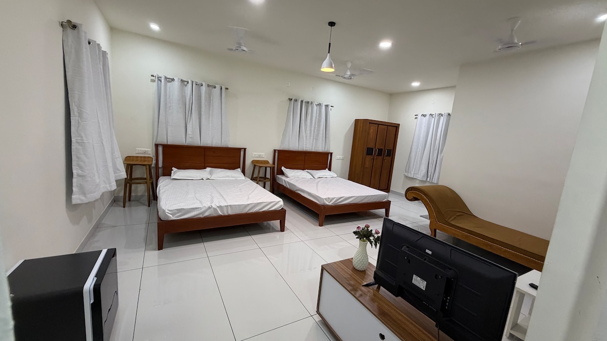 Relax with your loved ones in this spacious and peaceful 2BHK home. Perfect for families, friends, or business travelers, our home offers a cozy living space, comfortable bedrooms, and a fully equipped kitchen to make you feel right at home. Unwind on the balcony with a cup of tea, enjoy high-speed WiFi for work or streaming, Whether you’re here for a short getaway or a longer stay, this home is designed to give you comfort, peace, and beautiful memories.”
