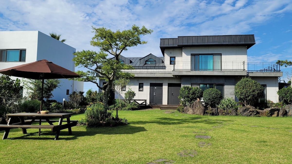 Situado en el pueblo costero de Hamdeok, Jeju Esta es Hoyudong Stay, una casa privada con una pared de piedra. Tómate un descanso de la vida ajetreada Para que puedas relajarte por completo en el tranquilo pueblo de Jeju Este espacio está preparado con comodidad y calidez. Playa Hamdeok, que puedes conocer en unos 10 minutos a pie. El ambiente tranquilo del pueblo se mezcla Estarás satisfecho tanto con el viaje como con la relajación. Cuando entres en el alojamiento Sala de estar soleada y dormitorio acogedor, Una cocina ordenada y una cómoda sala de estar están conectadas. En el espacio al aire libre rodeado de paredes de piedra Hay un amplio patio de césped y un jacuzzi privado al aire libre. Puedes aliviar cómodamente la fatiga de tu viaje con agua tibia. Por la noche, con una fogata Siente la tranquila noche de Jeju lentamente. Viajes familiares, viajes con niños, reuniones con amigos e incluso viajes familiares grandes. para que puedas quedarte cómodamente con cualquier compañero Hemos preparado cuidadosamente el espacio y las instalaciones. En un espacio donde coexisten la sensibilidad y la comodidad de Jeju Descansa en cuerpo y mente Disfruta de un viaje especial a Jeju.