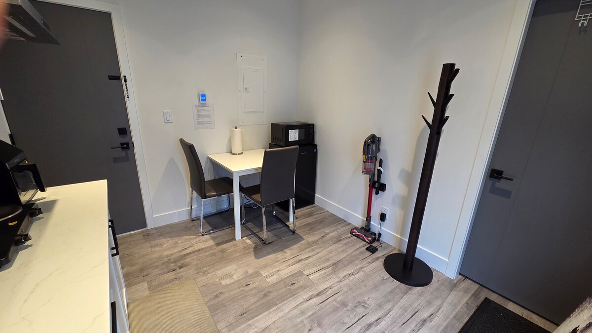 Nuestra suite es un impresionante refugio de un dormitorio recién construido, con un techo de 9' y un generoso espacio de 810 pies cuadrados. Cuenta con un televisor inteligente de 58 pulgadas y una cocina totalmente equipada, lo que garantiza un estilo de vida de alta calidad durante tus viajes. Disfruta del impresionante amanecer y atardecer desde tu balcón privado, con una magnífica vista al mar y las montañas a través del estrecho de Georgia. Convenientemente ubicada, nuestra suite es una base ideal para descubrir el encanto de la isla de Vancouver.