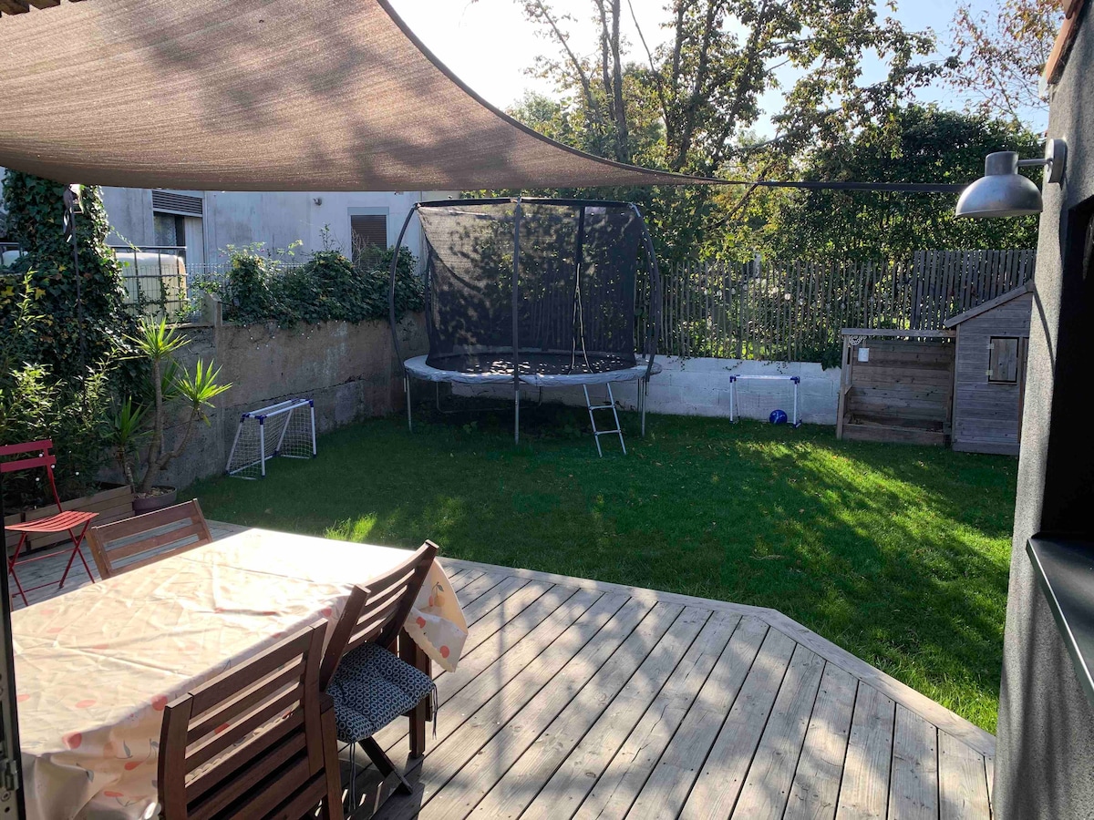 Nuestra casa, construida en 1928, fue objeto de grandes obras en 2020. Hemos creado un dos habitaciones para usted con acceso a nuestro bonito jardín (con trampolín para los niños). El alojamiento también puede servir como lugar de trabajo, en un entorno muy tranquilo y verde (sin tráfico, entorno residencial). Wifi disponible, estacionamiento frente a la casa, parada de tranvía y tiendas (alrededor de la iglesia) a 3 minutos a pie y estación de tren SNCF a 15 minutos a pie.