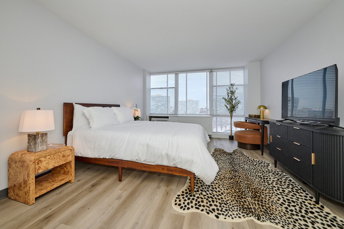 Impresionante ático en esquina superior de 1200 pies cuadrados con ventanas extragrandes, un diseño abierto y espectaculares vistas a la ciudad y al lago en múltiples direcciones. Este luminoso y moderno apartamento de dos dormitorios y un baño es perfecto para los viajeros que buscan una escapada elegante en el cielo en el centro de Chicago, justo al lado de Magnificent Mile y frente al lago. El edificio cuenta con excelentes comodidades, incluida una increíble terraza en la azotea con vistas de 360° al horizonte y al lago. ¡Esta es la mejor ubicación de la ciudad!