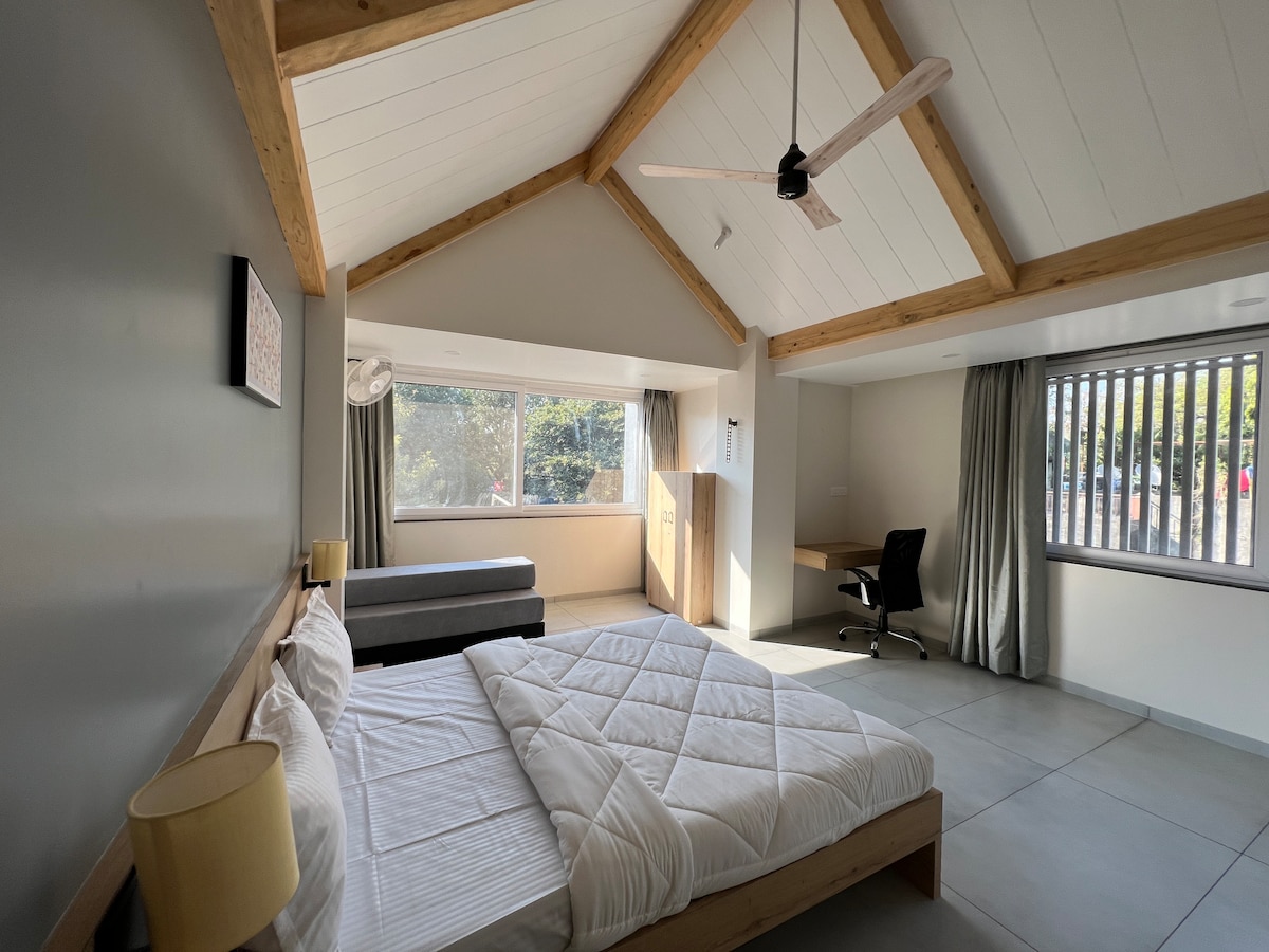 ¡Olvídate de tus preocupaciones en esta espaciosa y serena casa! Bienvenido a un espacio hermoso y acogedor lleno de luz natural: es tranquilo, soleado y perfecto para relajarse. Te encantará pasar tiempo en el jardín, ya sea tomando tu café de la mañana o simplemente disfrutando de un poco de aire fresco y tranquilo. Como es una zona residencial, asegúrate de no molestar a los vecinos. *** Tenemos 2 alojamientos más para el mismo bunglow: Vatsalya I para 6 huéspedes y Vatsalya Studio Apartment para 3 huéspedes. ***