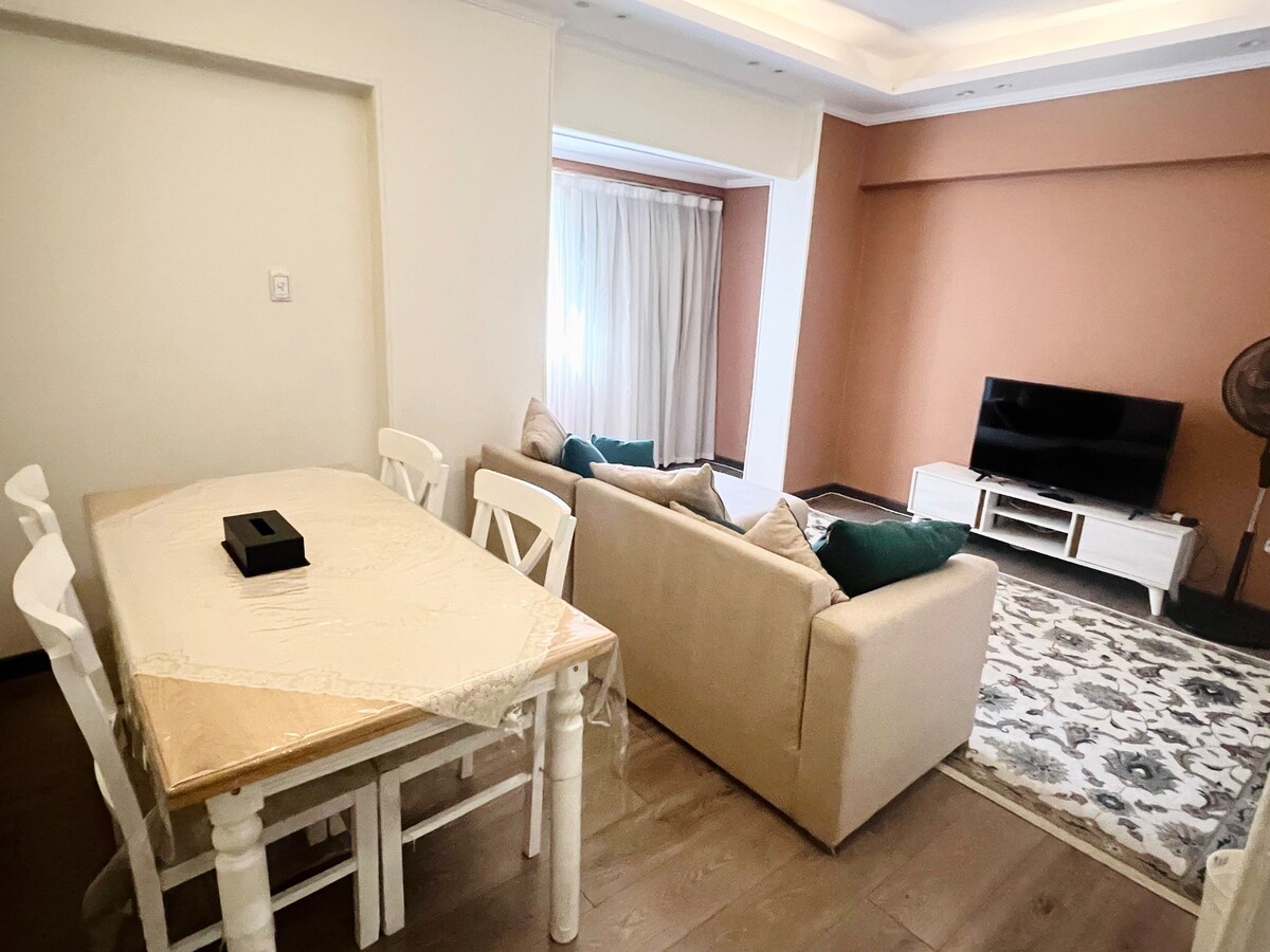 Disfruta de lo último en comodidad moderna en nuestro nuevo departamento de 2 dormitorios y 2 baños adecuado para 4 personas. Cada centímetro de este elegante espacio es nuevo y está diseñado para que tu estancia sea inolvidable. Nuestro departamento es perfecto para familias o viajes de negocios. Encontrarás todos los servicios que necesitas, como una cocina totalmente equipada y una cómoda sala de estar. Situado en un complejo privilegiado, estás a poca distancia de restaurantes, tiendas en Tagamoa y Naser City. ¡Reserva ahora, no podemos esperar para hospedarte!