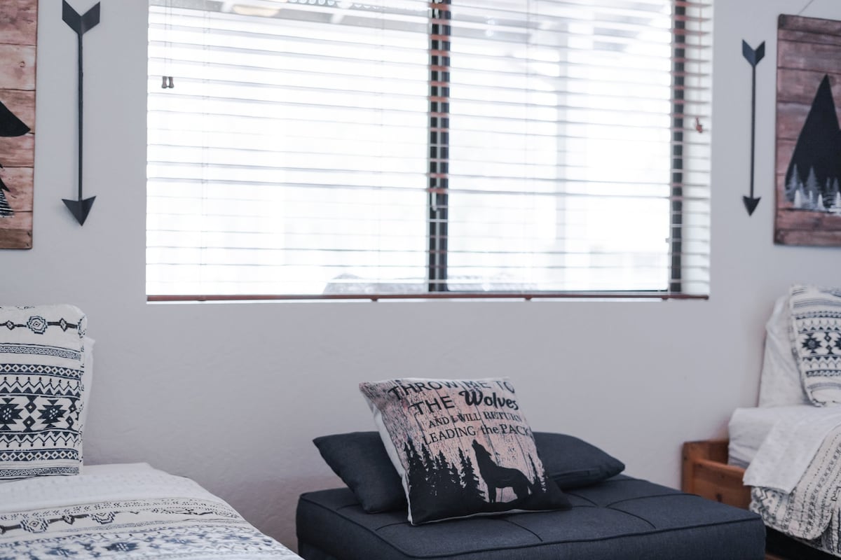 ¡Acogedora cabaña de dos dormitorios con chimenea!
