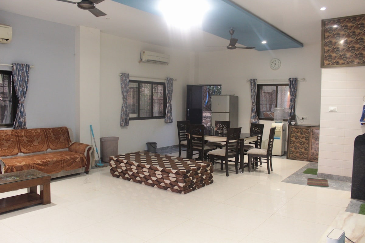 Escápate a nuestra acogedora villa 3BHK en Panvel, a solo 1,5 horas de Bombay y a 30 minutos de Navi Mumbai. Este sereno refugio ofrece una piscina privada, amplias habitaciones con aire acondicionado, wifi de alta velocidad y una cocina totalmente accesible para la máxima relajación. Ideal para familias o pequeñas reuniones, combina servicios con privacidad exclusiva. Convenientemente ubicado en una autopista lisa, es el lugar perfecto para una escapada tranquila y accesible. Tu rápida escapada te espera.