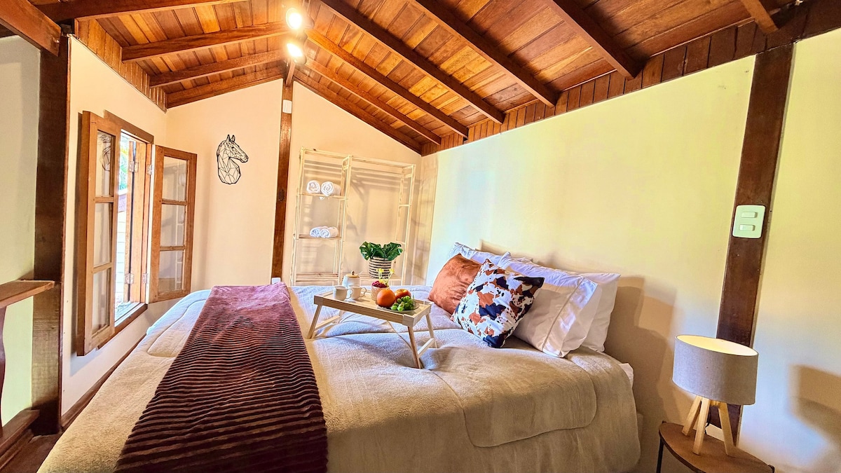 Nunca olvidarás tu estancia en este romántico y sorprendente chalet en Piracaia-SP. ¿Hay algo mejor que vivir juntos en la paz de la naturaleza? El Chalé da Vivenda Apuã está equipado con jacuzzi hidroeléctrico caliente, inmersión en la terraza, aire acondicionado, cocina, chimenea,barbacoa y una cama doble para acomodar todo el amor del mundo. Y lo mejor: cerca, en el interior de SP, a 20 minutos del centro de Atibaia.