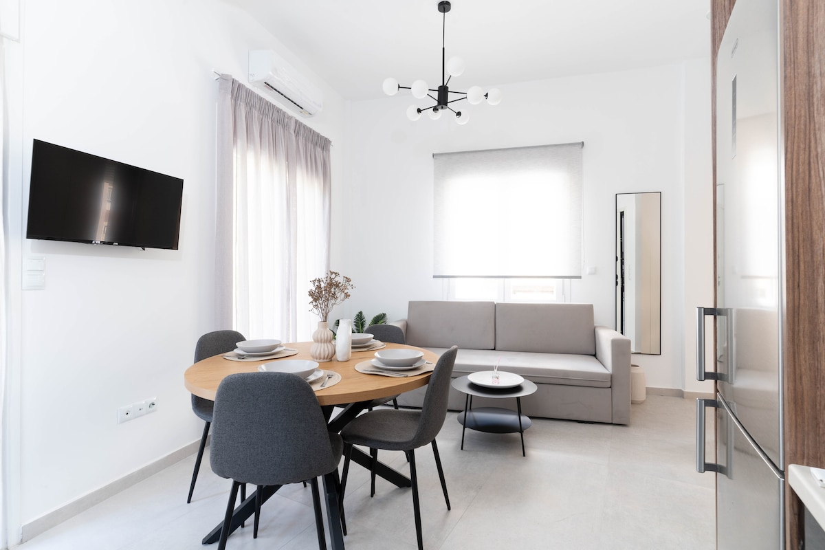 Prepara un desayuno ligero en una acogedora cocina con armarios minimalistas y cena en una encantadora mesa de bistró en el balcón. Por la noche, relájate en un sofá elegante y piérdete en un libro dentro de una elegante y moderna sala de estar con obras de arte gráficas de moda. A 3 minutos a pie de la estación de metro SygkrouFix, a 8 minutos a pie del Museo de la Acrópolis. — Como el COVID-19 ha crecido a nivel de pandemia, estamos trabajando para garantizar el cumplimiento de las últimas directrices de higiene y limpieza. Estamos tomando medidas adicionales de salud y seguridad y protocolos de desinfección para mantener los más altos estándares. Este espacioso estudio de 40 m2 con un diseño minimalista de lujo, completamente renovado en marzo de 2018, es ideal para parejas, grupos pequeños de amigos o parejas con un niño que quieran disfrutar de unas vacaciones únicas en Atenas. El plano de planta abierta consta de una zona de entrada, una cocina totalmente equipada, zona de dormitorio con cama tamaño queen (colchón de calidad y ropa de cama de algodón), un cómodo sofá cama y un elegante baño con todas las comodidades que puedas necesitar durante tu estancia. Wifi de alta velocidad, Netflix y canales locales básicos. Aire acondicionado (frío y calor), para el invierno también hay sistema de calefacción central y chimenea. Estaremos a tu disposición las 24 horas del día, los 7 días de la semana, proporcionándote toda la información necesaria para que tengas una estancia placentera en nuestro sofisticado apartamento. Registro de entrada flexible, ya que te ofrecemos la opción de registro de entrada automático durante la noche. - Se admiten estancias largas. Pregunta por las tarifas de un mes o más. Situado en el histórico barrio de Koukaki, el apartamento está a solo 8 minutos a pie del museo de la Acrópolis y a tiro de piedra de algunos de los sitios históricos y museos más populares de la ciudad. Un vibrante paraíso urbano está a la vuelta de la esquina, con restaurantes, panaderías, cafeterías y coctelerías cerca. Para reservas de más de 10 días, ofrecemos una limpieza adicional y cambio de ropa de cama durante la estancia de forma gratuita.