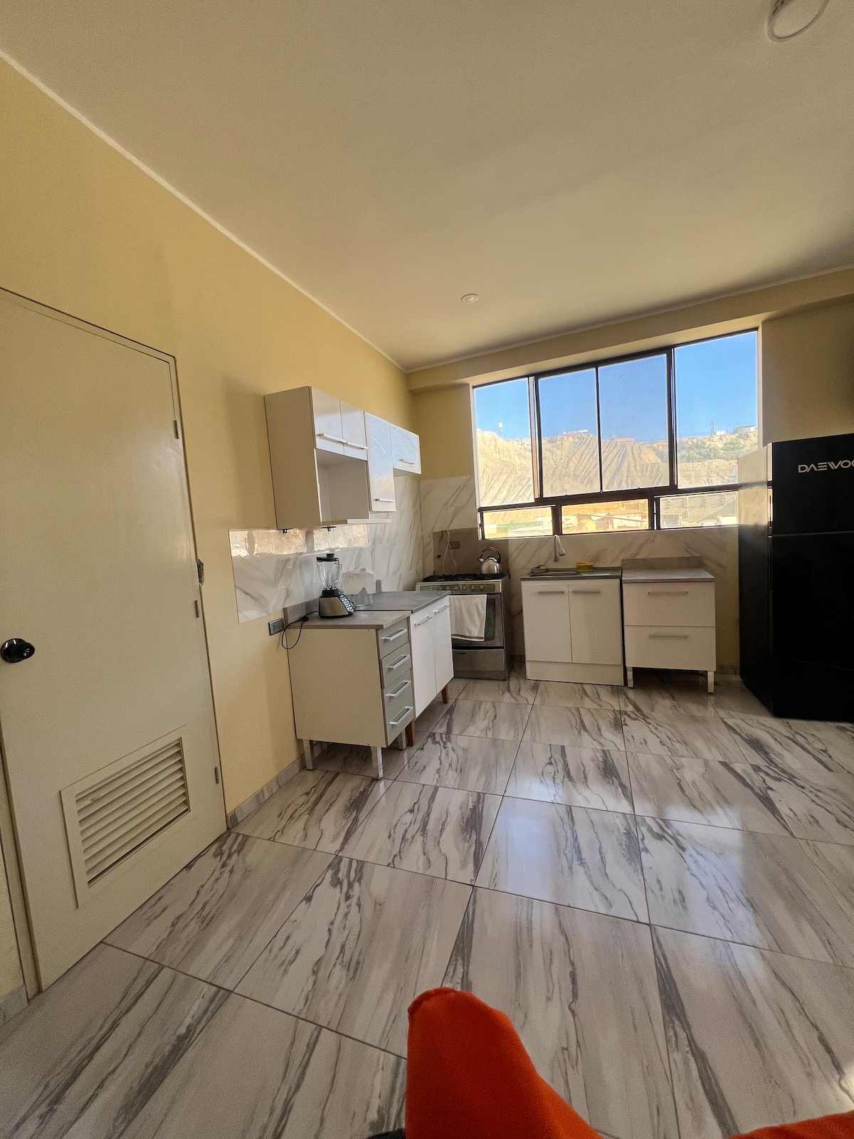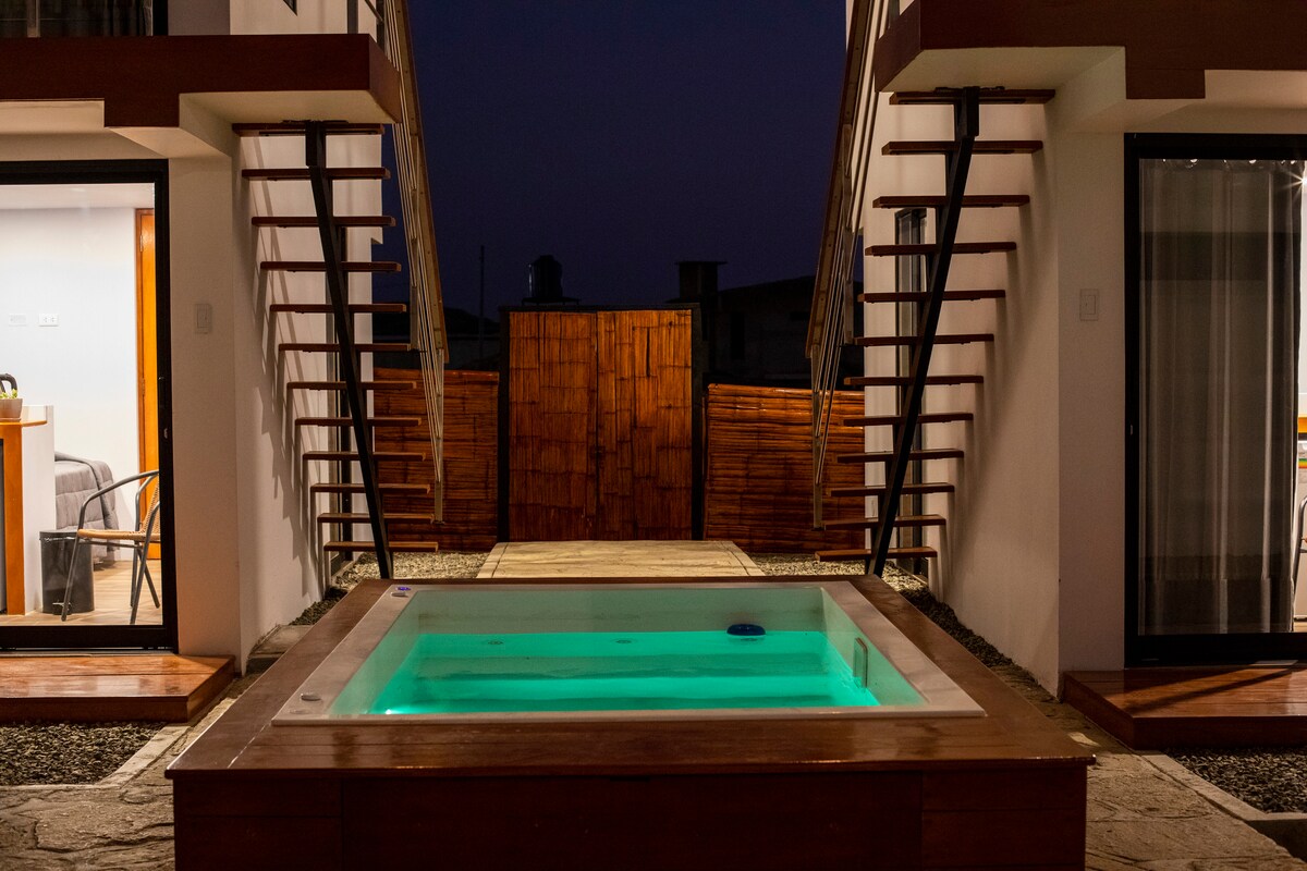 Disfruta de una placentera estadía en PARIÑITAS HOUSE, un espectacular mini departamento ubicado en el centro de Talara. Totalmente equipado con una cocina completa integrada y un dormitorio con cama de 2 plazas. Un Baño completo con agua caliente las 24 horas y una sala con decoración moderna, con WIFI y SMART TV (Cable y Netflix) Ubicado estratégicamente a 2 cuadras a pie del Centro Cívico y de muchos establecimientos comerciales, restaurantes, bodegas y a solo 15 minutos del Aeropuerto.