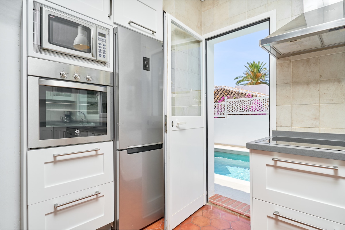 Vivienda a estrenar, combina la arquitectura mediterránea y un ambiente acogedor con detalles para aquellos que deseen unas vacaciones confort. Céntrica, a 4 min. del Balcón de Europa y de la playa, una vez dentro, podrás experimentar privacidad y silencio. Con entrada independiente desde la calle, dos dormitorios, un baño in-suite y otro central. Aire por conducto en todas las estancias con air-zone y chimenea eléctrica. Porche cubierto con piscina privada. La cocina totalmente equipada