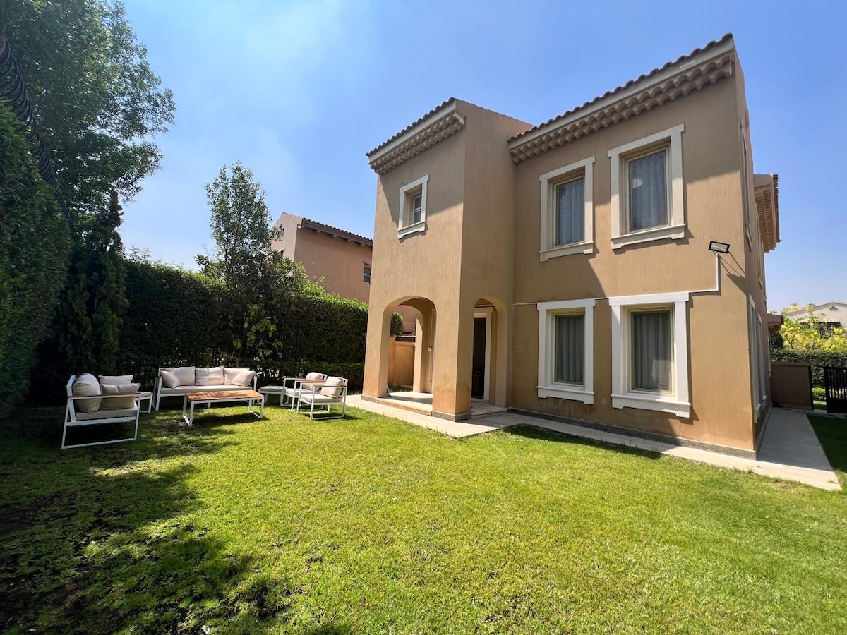 - Hermosa casa de la piscina directamente frente a la piscina y los jardines en el complejo más lujoso de Nuevo Cairo. - Cocina totalmente equipada con encimeras de granito. - Cable y wifi. - Zona de barbacoa al aire libre. - A 5 minutos de mercados y restaurantes. - A 15 minutos en coche de los centros comerciales y cines de New Cairo. - ¿No te apetece salir? Puedes recibir comida, productos de farmacia y supermercados en la puerta de tu casa ;) - Cancha de tenis, voleibol, campos de fútbol y gimnasio con cargo aparte. - Servicio de limpieza opcional y limpieza en seco con cargo por separado.