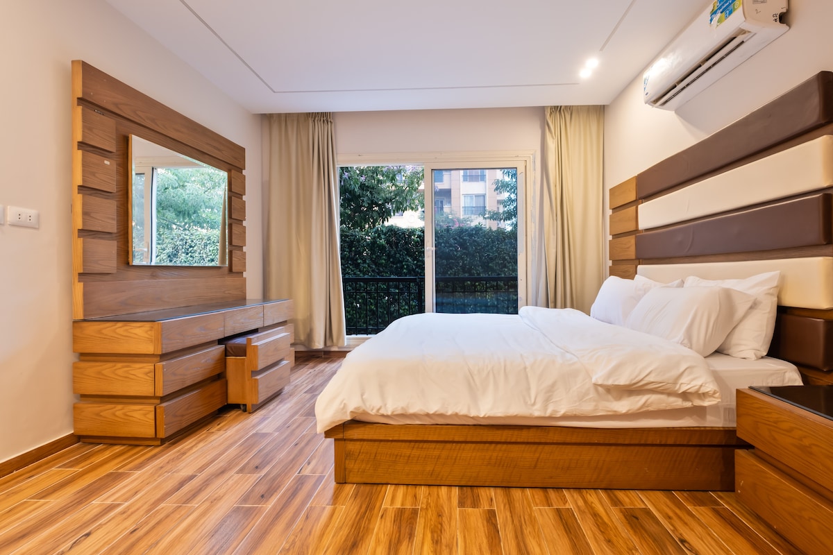 Stay in a stylish 3-bedroom ground-floor apartment at Stone Residence, New Cairo. Featuring a master ensuite, two modern bathrooms, and a private garden, it’s perfect for families or business travelers. Guests enjoy self-check-in, high-speed WiFi, and access to multiple pools, lakes, sports courts, cafés, and kids’ areas inside the compound.