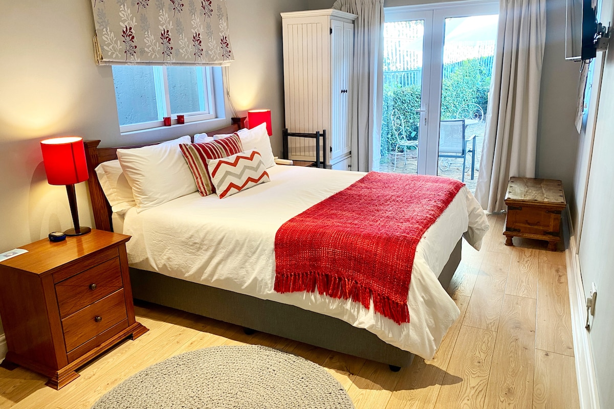 ¡Te encantará la encantadora decoración de esta elegante y acogedora suite de invitados que está libre de cargas! Tu propio espacio privado y aparcamiento seguro gratuito. Una cama tamaño king y un sofá cama se convierten en dos camas individuales, por lo que es ideal para familias. Estamos convenientemente ubicados a quince minutos del aeropuerto, a veinte minutos de la mayoría de las playas y del centro de la ciudad de Ciudad del Cabo. La Universidad de Ciudad del Cabo y los jardines botánicos de Kirstenbosch están a diez minutos. El campo de críquet de Newlands está a cinco minutos a pie.