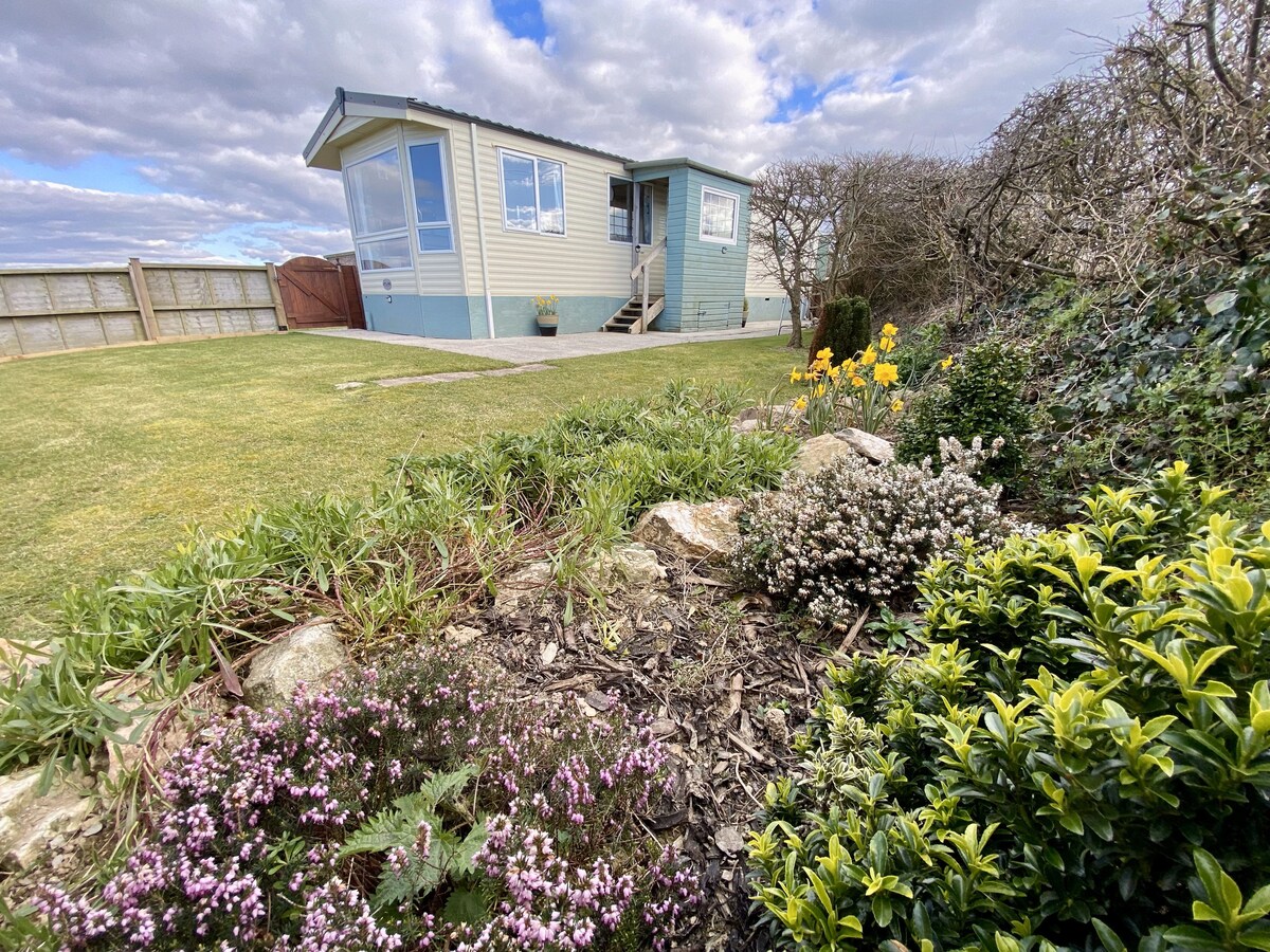 Pen Cliff-Chalet junto al mar y jardín con vistas al mar.