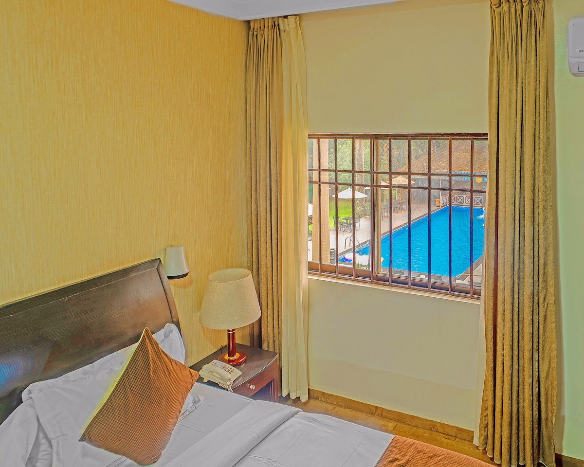 Tastefully furnished with all the modern amenities for a complete stay experience. The landscape view into the courtyard is refreshing. It has a pool view, perfect for guests who love a calm and scenic atmosphere.