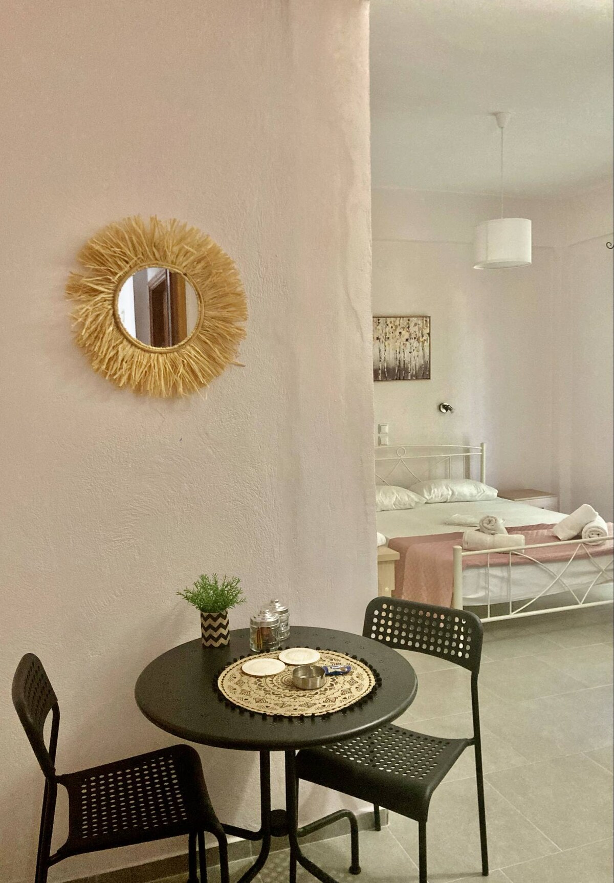 Sunflower Apartment es un apartamento de lujo totalmente nuevo con 1 dormitorio y una amplia terraza, perfectamente ubicado a solo 100 metros de la playa de Nissaki con sus aguas cristalinas, a un par de pasos de excelentes tabernas frente al mar, supermercado y parada de autobús. Sin duda, es la casa de vacaciones perfecta para todos aquellos huéspedes que buscan una estancia exclusiva en una ubicación única prácticamente en el paseo marítimo sin necesidad de depender constantemente de un coche.