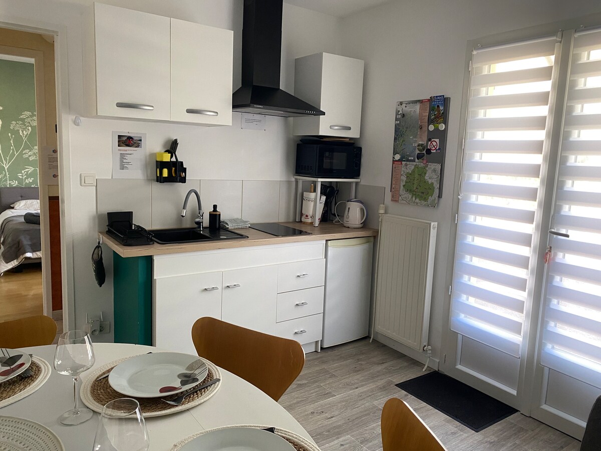Nuestra finca de 14 hectáreas de jardín, prados y bosques, con 2,4 km de caminos acondicionados, le dará la bienvenida en el Périgord verde. Encontrarás 2 casas rurales, una de las cuales es perfecta para alojar a dos personas. Cama king size de 180x200. Bonita sala de estar totalmente equipada. Ducha italiana. Amplia terraza orientada al oeste, con muebles de jardín y mesa de comedor. Acceso directo a la gran piscina climatizada en temporada. Albornoces y toallas de baño te acompañarán al spa (jacuzzi y sauna). Bicicleta de montaña disponible.