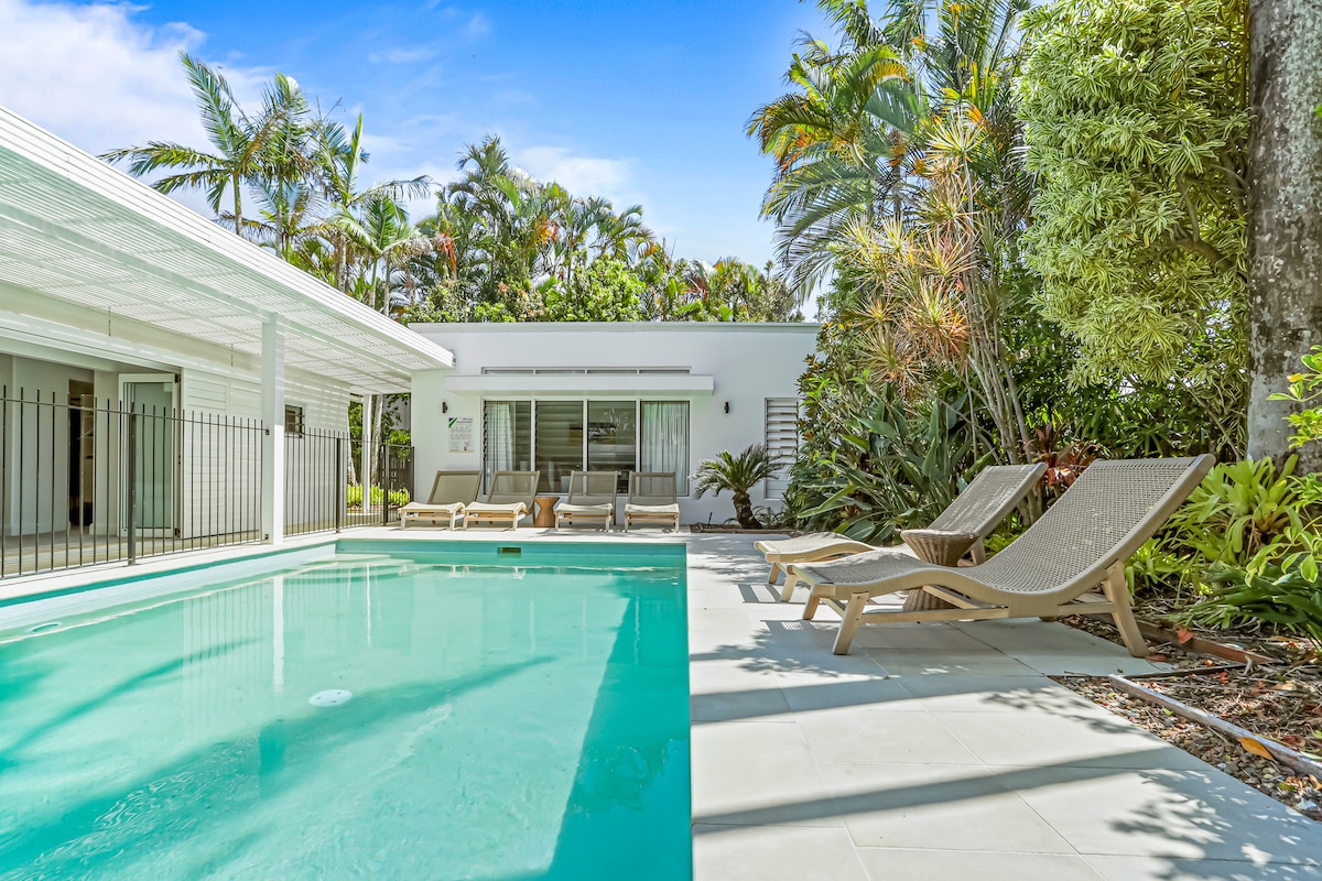 Piscina de agua salada EXCLUSIVA para esta villa. Lujo contemporáneo y espacioso A 12 minutos a pie de Hastings Street y Main Beach en terreno llano. Aire acondicionado - Dormitorios y salón. Ventiladores de techo: dormitorios y salón. La piscina es exclusiva de esta villa. TV - NETFLIX Wifi de cortesía. 2 dormitorios con opción de 2 o 3 camas (con licencia en total 4 huéspedes). Por favor, especifica la configuración de la cama al hacer la reservación. Propiedad para no fumadores. No es apto para fiestas, eventos o reuniones de tipo escolar.