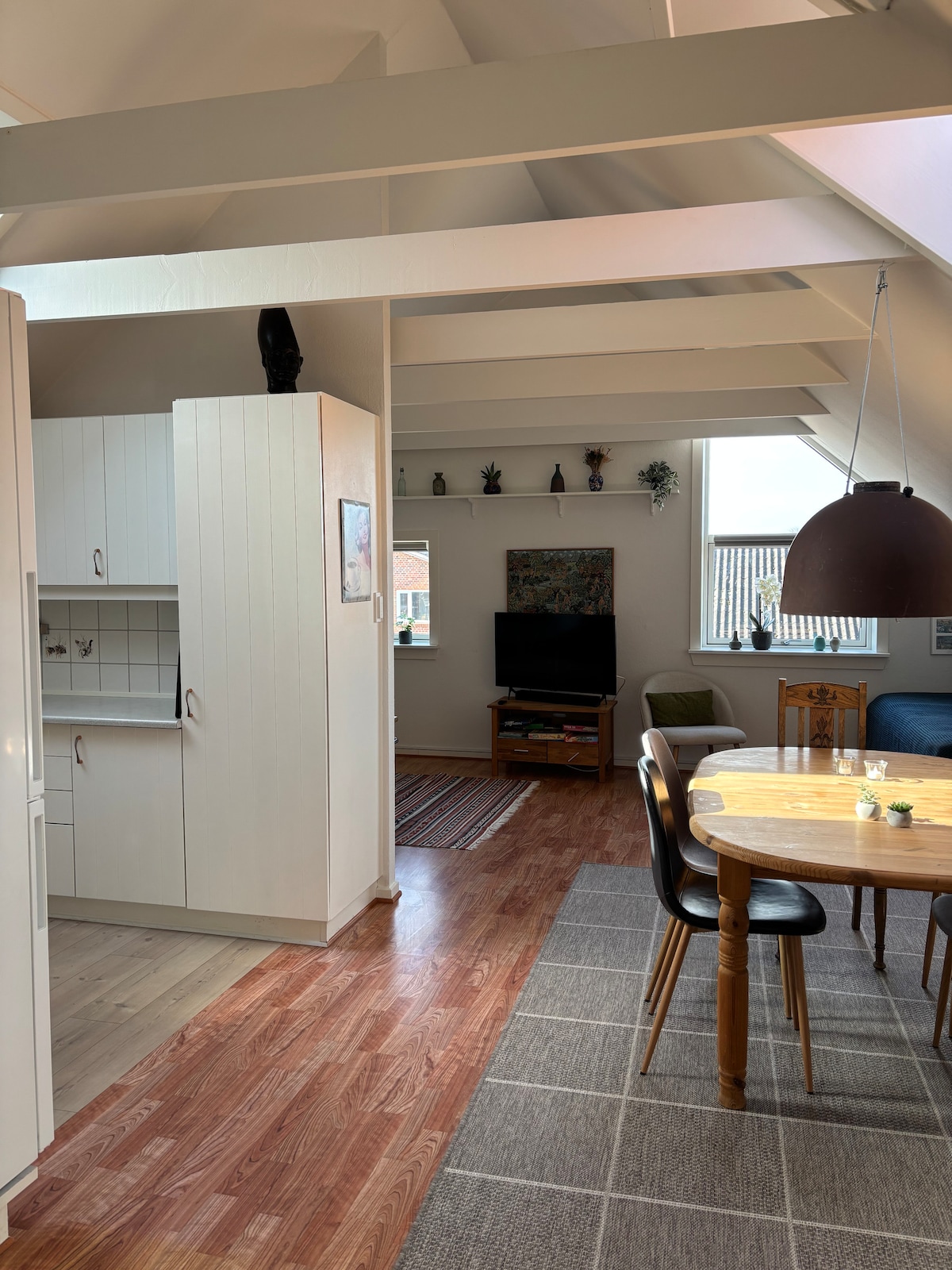 Tu familia estará cerca de todo cuando te quedes en este alojamiento céntrico Acogedora casa en medio de la ciudad El departamento tiene una sala de estar y cocina, baño con bañera, así como 2 dormitorios. Habitación 1; cama de 140 cm de ancho Habitación 2: 1 cama doble de 180 cm 1 cama individual en la sala de estar. Vivimos en el primer piso, con una gran terraza compartida. En la cocina hay té gratis, café instantáneo, si te quedas a pasar la noche a diario. Hay oportunidades de compras y varios restaurantes en la ciudad. Playa de Henne 12 km. Nymindegab 7 km Puerto de Bork 8 km