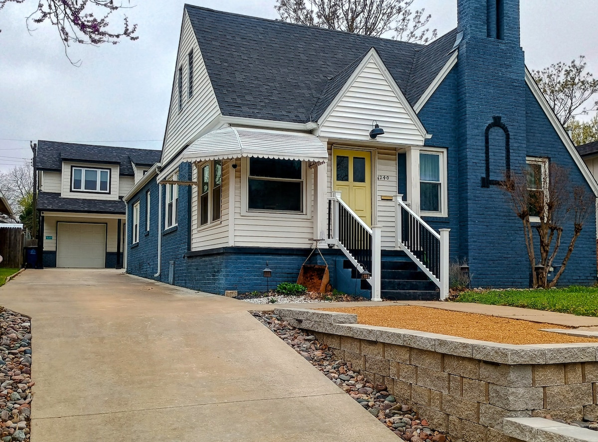 Esta nueva casa de huéspedes es un oasis en el corazón de la ciudad. La morada de arriba incluye un dormitorio con un espacio de trabajo (y wifi rápido), una cocina equipada y una acogedora sala de estar con muebles nuevos. Al aire libre hay una chimenea sin humo y una cocina al aire libre. The Oasis se encuentra a dos cuadras de la Universidad de Tulsa, a una milla del recinto ferial y a cinco minutos en coche del próspero centro de Tulsa. Hay muchos restaurantes y tiendas por todas partes. P.D. Los scooters Lime se pueden estacionar en tu puerta. ¡Solo tienes que pedirlo!