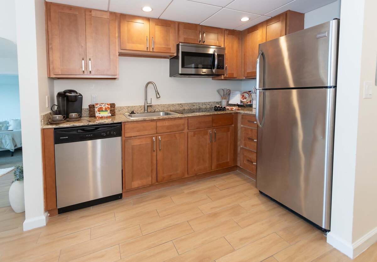 El apartamento tiene una nevera de tamaño completo, cocina, microondas, lavavajillas, tostadora, cafetera y wifi de Comcast con selección de visualización de comandos de voz. Tiendas de comestibles, farmacia, restaurantes frente al mar, tiendas a menos de 3 millas. Un barrio muy tranquilo con carriles bici y transporte público. El apartamento tiene residentes a tiempo completo al lado de esta unidad. No se tolera la actividad ruidosa, especialmente durante las horas de silencio de 22:00 a 7:00. El anuncio muestra que es para 4 huéspedes, pero hay un sofá cama disponible para 1 más en la sala de estar.