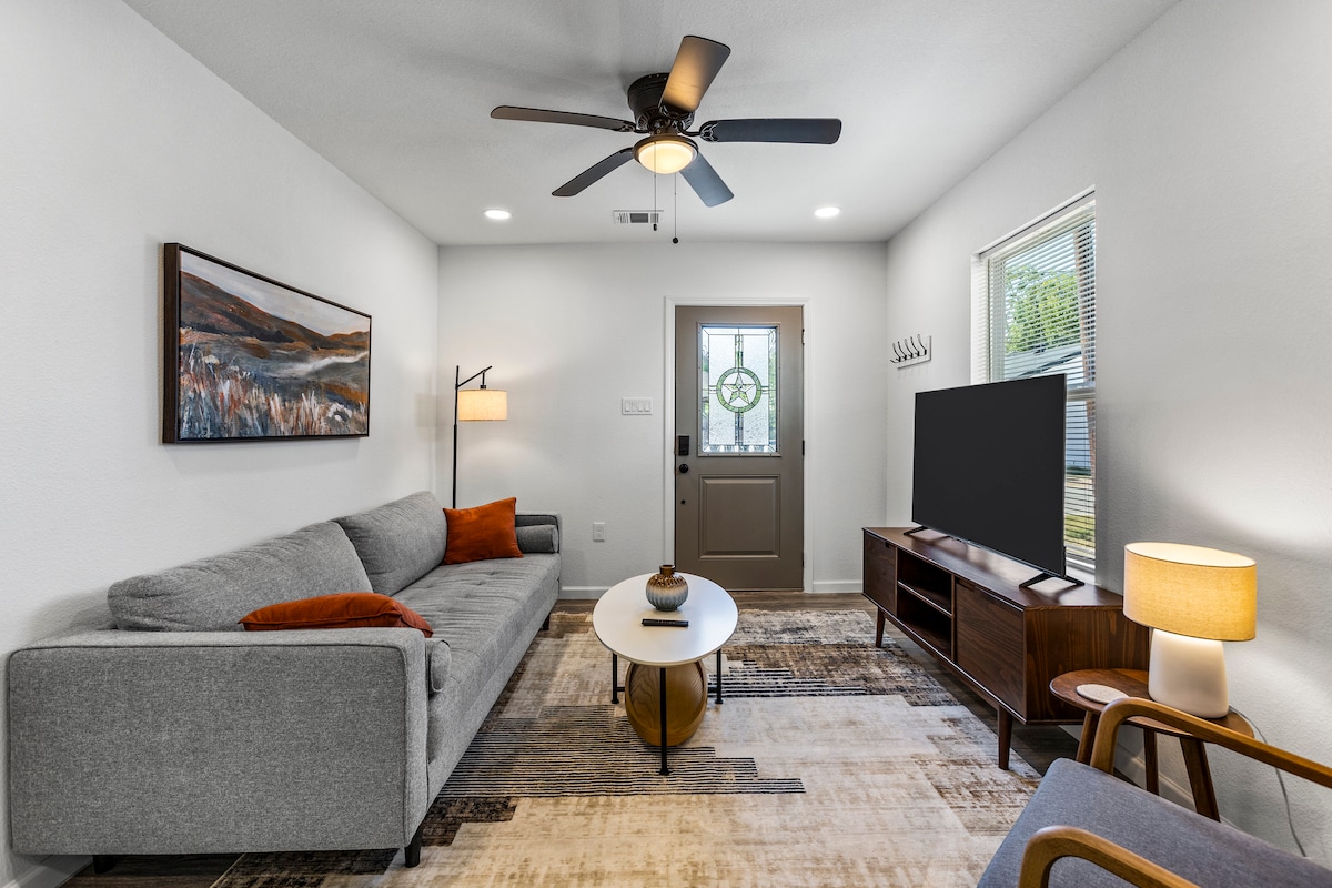 El encanto te espera en las calles arboladas de esta impresionante casa de huéspedes artesanal de 2 pisos. Este espacioso refugio privado de 93 m² cuenta con una cocina renovada y dos baños, con cómodas habitaciones para hasta cuatro huéspedes.Ubicado en el corazón de Woodland Heights, a poca distancia de parques, cafeterías y restaurantes locales.Ubicada a solo 2 millas del centro de la ciudad y a 10 minutos del Centro Médico, esta casa ofrece la combinación perfecta de encanto, comodidad y privacidad.