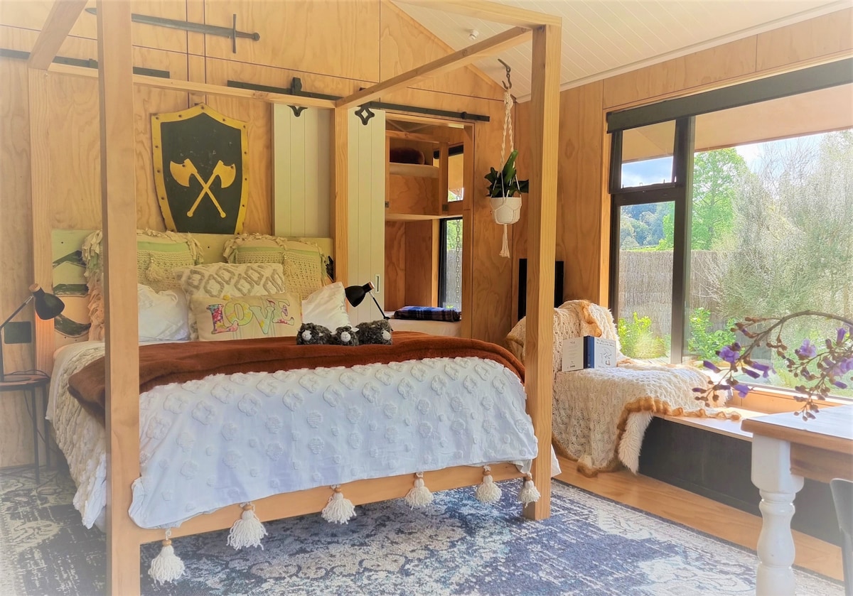 La cabaña River Song en Ripples Retreat es todo lo que la gente imagina sobre Nueva Zelanda: colinas onduladas, un río tranquilo y el canto de los pájaros. Construido a mano en nuestra granja familiar, rodeado de paisajes de Hobbit, este romántico estudio tamaño king tiene capacidad para 4 personas en 2 camas. Un acogedor rincón doble. Perfecto para parejas que aman el baño al aire libre y la observación de estrellas; las familias disfrutan del kayak, la pesca y el encuentro con las ovejas. Muchos se quedan de 3 a 5 noches para cascadas, luciérnagas, Hobbiton y playas, o como un aterrizaje suave o un suave adiós a Nueva Zelanda. Quédate más de 4 días para un recorrido gratuito por la granja.