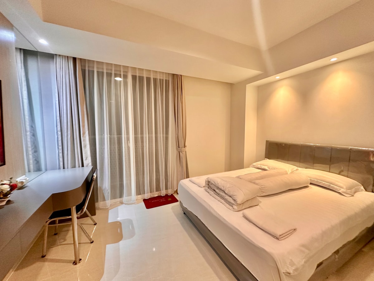 La ubicación muy buena , cerca de todo si estás c auto Está cerca de la autopista, supermercado, restaurante, oficina, museo y cafetería. La administración del edificio, los recepcionistas y los guardias de seguridad responden rápidamente y son amables. La instalación también está completa: GIMNASIO, piscina, aparcamiento. Nota: Por favor, trae tus propias toallas. Proporcionamos otros elementos esenciales, pero no toallas. Para un apartamento tipo estudio en Yakarta, este es el más grande y acogedor que puedes conseguir.