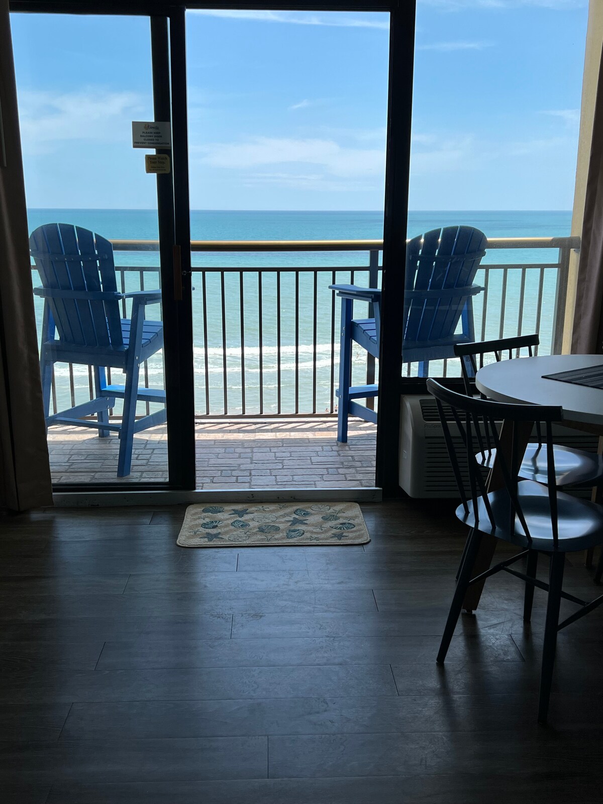 UNIDAD "PARLOR" MUY SOLICITADA, NO HAY NINGUNA OTRA COMO ESTA EN MYRTLE BEACH, OFRECE 260 GRADOS DE VISTAS AL MAR CON UN BALCÓN ENVOLVENTE DE UN TOTAL DE 300 PIES CUADRADOS DE BALCONES, 2 BALCONES DE 30 PIES DE LARGO CON 3 DESLIZANTES, VISTA AL MAR Y A LA PUESTA DE SOL, LA UNIDAD ES ABIERTA Y MÁS GRANDE QUE LA MAYORÍA DE LAS DE 1 DORMITORIO, 2 CAMAS TIPO QUEEN, SOFÁ CAMA, LA UNIDAD ENVUELVE TODO EL LADO SUR DEL EDIFICIO, COCINA COMPLETA, BAÑO, 600 PIES CUADRADOS DE ESPACIO HABITABLE CON 300 PIES CUADRADOS DE BALCÓN, NO HAY NADA MÁS COMO ESTA