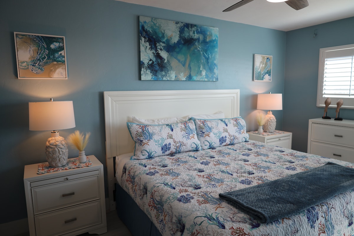 Relájate con toda la familia en este lugar tranquilo. Ubicado en el barrio de Naples Cay, nuestro apartamento te sumergirá en el encanto y la emoción de Naples, ¡la capital de las horas felices y la música en vivo! Nuestro espacioso apartamento está muy bien amueblado y cuenta con electrodomésticos de primera calidad. ¡El balcón abierto es lo más destacado del espacio con hermosas vistas a la playa! ¡Mantente fresco con aire acondicionado central y relájate cómodamente con camas tamaño king en AMBAS habitaciones!