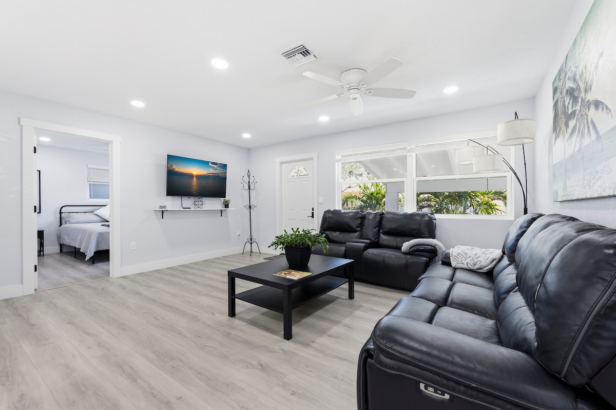 ¡Bienvenido a nuestro bungalow en el centro de Palm Beach! Nuestro acogedor hogar es el lugar perfecto para unas vacaciones relajantes y agradables. Ubicado a poca distancia a pie de la costa, tendrás fácil acceso a todas las actividades y emociones que Palm Beach tiene para ofrecer. A 5 minutos en coche de Juno Beach. Amplio patio trasero privado con cenador y porche protegido. Hay muchos restaurantes, tiendas y lugares de interés cercanos para explorar. Con todas las comodidades de tu propio hogar, seguro que disfrutarás de una estancia maravillosa.