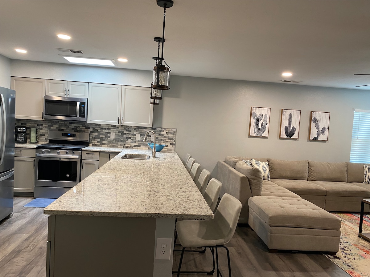 We welcome you to our Desert Hideaway! This space is great for families and groups alike, with lots of room to spread out and enjoy. Relax in the cozy tv room, visit in the front sitting room with a view of the Sandia mountains, play foosball, or sit on the back patio and enjoy the spacious backyard. We are pet friendly and welcome your furry friends! This is a quiet location but very close access to I-25 and Paseo del Norte, which can quickly get you to wherever you want to be in Albuquerque.