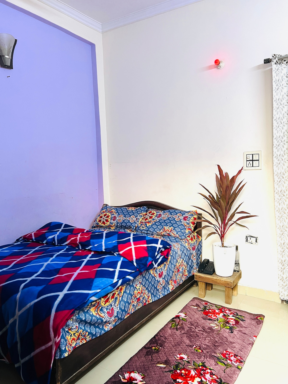 Ubicación ★céntrica con un chef experto para garantizar una estancia cómoda sin la molestia de cocinar. Desayuno gratuito. ★Todo el primer piso. 2200 pies cuadrados, 4 dormitorios con baño adjunto. Wifi de★ 250 Mbps. Televisores inteligentes. Guardia y cuidador las★ 24 horas. A ★5 minutos a pie del mercado de Def Col, repleto de restaurantes, pubs y cafeterías. A 5 minutos a pie del metro. Cocina ★modular con aire acondicionado, filtro RO, aire acondicionado, calefacción y lavadora. Servicio de limpieza★ diario. ★Aeropuerto a 14 km/500 rupias. ★Cerca de la Puerta de la India, AIIMS. Mesa de oficina de★ trabajo.