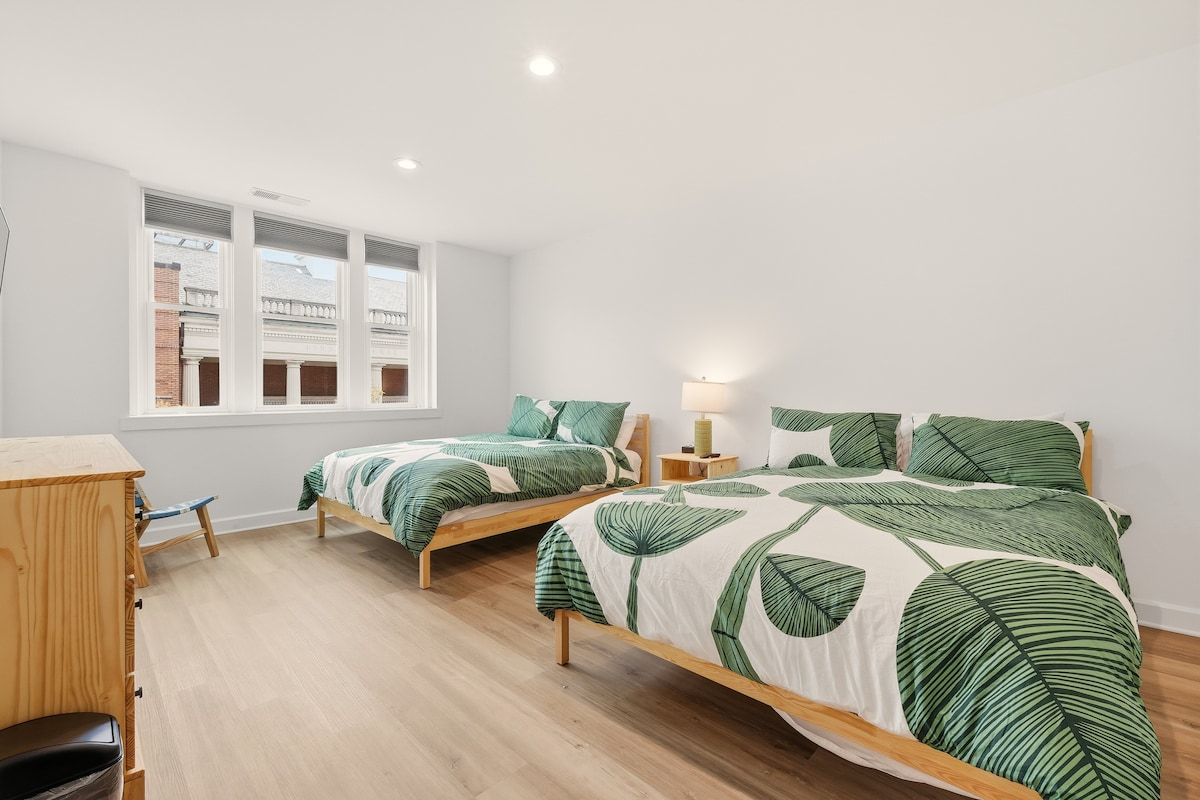 Estudio sereno con dos camas tamaño queen cerca de parques y tiendas