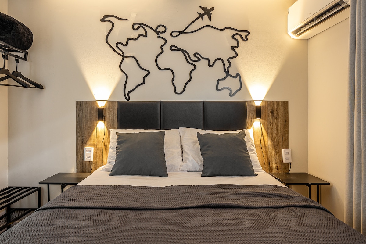 Apartamento Studio nuevo y moderno ubicado en una zona privilegiada de Ribeirão Preto, cuenta con Wi-Fi, aire acondicionado, cocina completa, smart Tv 40', gimnasio BlueFit en el edificio, Air fryer, plaza de garaje y área de ocio completa, piscina, sauna, sala de juegos, espacio gourmet, espacio de coworking para trabajar, home market 24h y la mejor ubicación de la ciudad, en la Avenida Presidente Vargas a 3 minutos del centro comercial Ribeirão y cerca de los mejores parques, bares y restaurantes de Ribeirão.