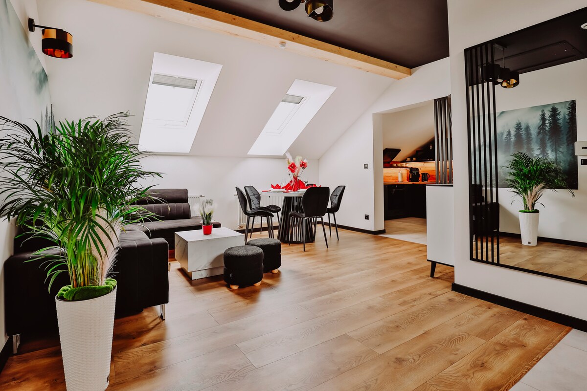White Studio es un espacio con una decoración única, perfecto para una pareja o 2+2, con terraza, jacuzzi y vista a la puesta de sol y a Babia Góra. Tiene su propio jacuzzi en la terraza (en la temporada de verano) y una red recreativa al aire libre con un certificado donde puedes estar admirando la naturaleza que nos rodea. El edificio se da la vuelta para proporcionar 100% de privacidad. ¡NOTA! Los precios en el portal se aplican al alojamiento, SPA - sauna y jacuzzi se pagan adicionalmente.