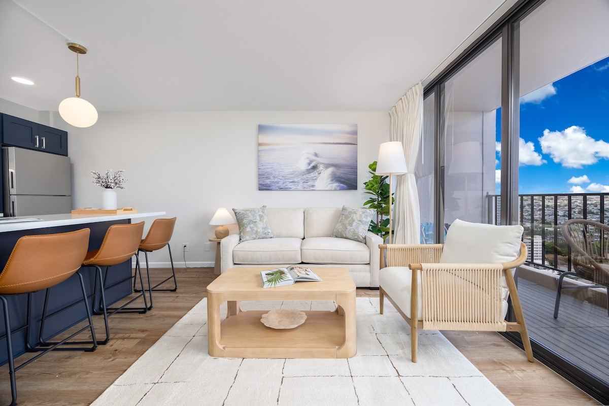 Nuevo y moderno apartamento con cocina completa y vistas Waikiki