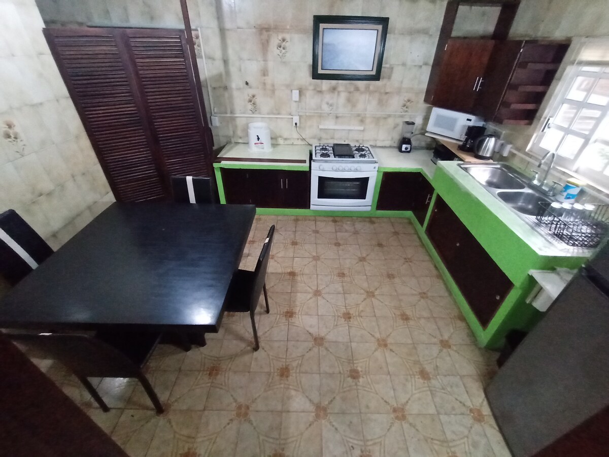 Espaciosa suite en el jardín de una casa en zona residencial, la entrada principal se comparte pero la suite es completamente independiente. El jardín es muy amplio y viven 2 perritos muy amigables. Convenientemente localizada a 2 cuadras de negocios, restaurantes, bancos y cafecitos. El mercado local se encuentra a una cuadra caminando. El centro histórico está a 15/20 minutos caminando o 5/10 min en taxi o autobús.