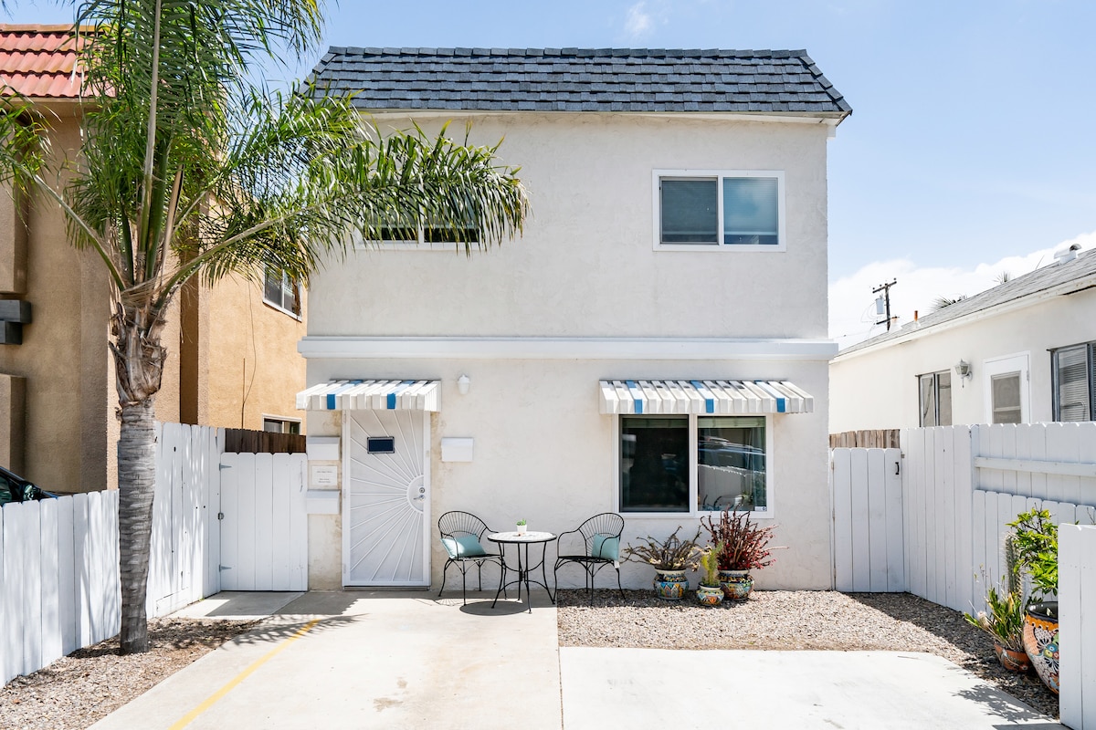 Casa independiente con patio, entrada privada y aparcamiento cerrado fuera de la calle. ¡Tu propia casa de playa! ¡A poca distancia a pie de la playa, restaurantes y cervecerías, excelente café, tienda de comestibles/alimentos saludables, tiendas boutique, mercado de agricultores y vida nocturna! ¡Te encantarán las vibraciones playeras modernas, limpias y frescas de este artesano costero por excelencia diseñado por el propietario! Barbacoa de gas, lavandería, bicicletas, equipo de playa, corralito, silla alta. A tres manzanas de la playa y de Newport Ave. Propiedad de 750 pies cuadrados con dos casas.