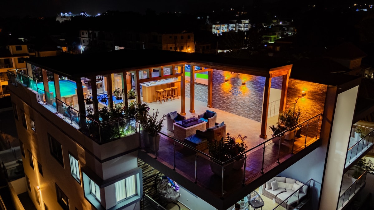 Disfrute de la esencia caribeña en Villa Sky Mar, un moderno refugio de 3 dormitorios en Puerto Plata, rodeado de paisajes tropicales, diseñado para grupos de 8 a 10 huéspedes y a solo 15 minutos de la playa «Cosita Rica». La villa ofrece piscina privada, zona de parrilla y fogata, y una amplia terraza con vistas espectaculares a la montaña y al mar. Con wifi rápido, estacionamiento privado, seguridad las 24 horas y total privacidad, ofrecemos comodidad, tranquilidad y una escapada caribeña inolvidable.